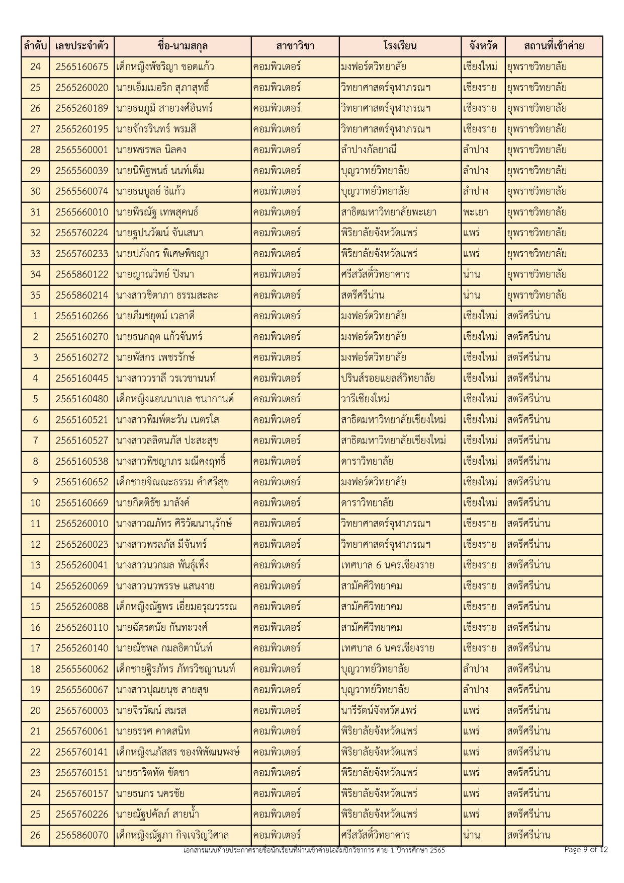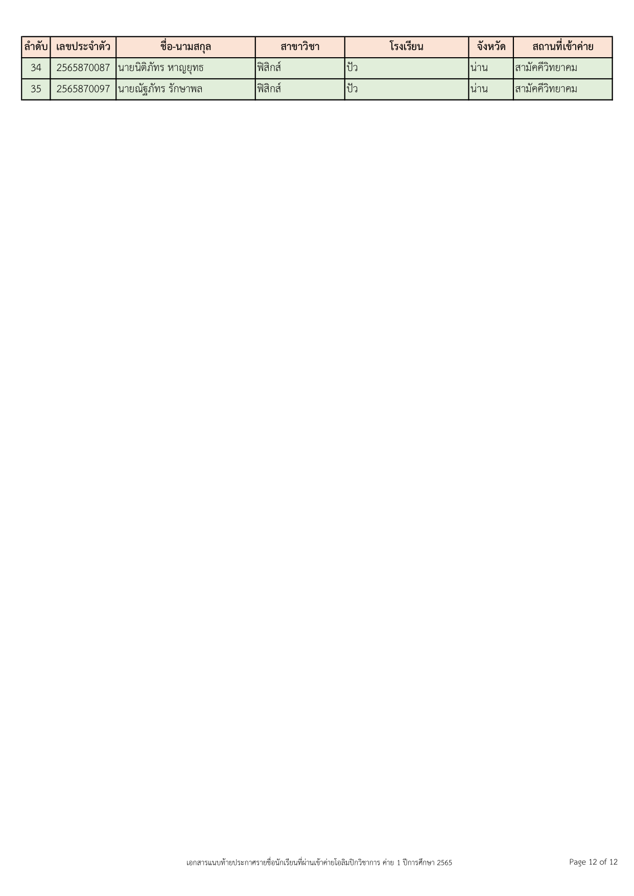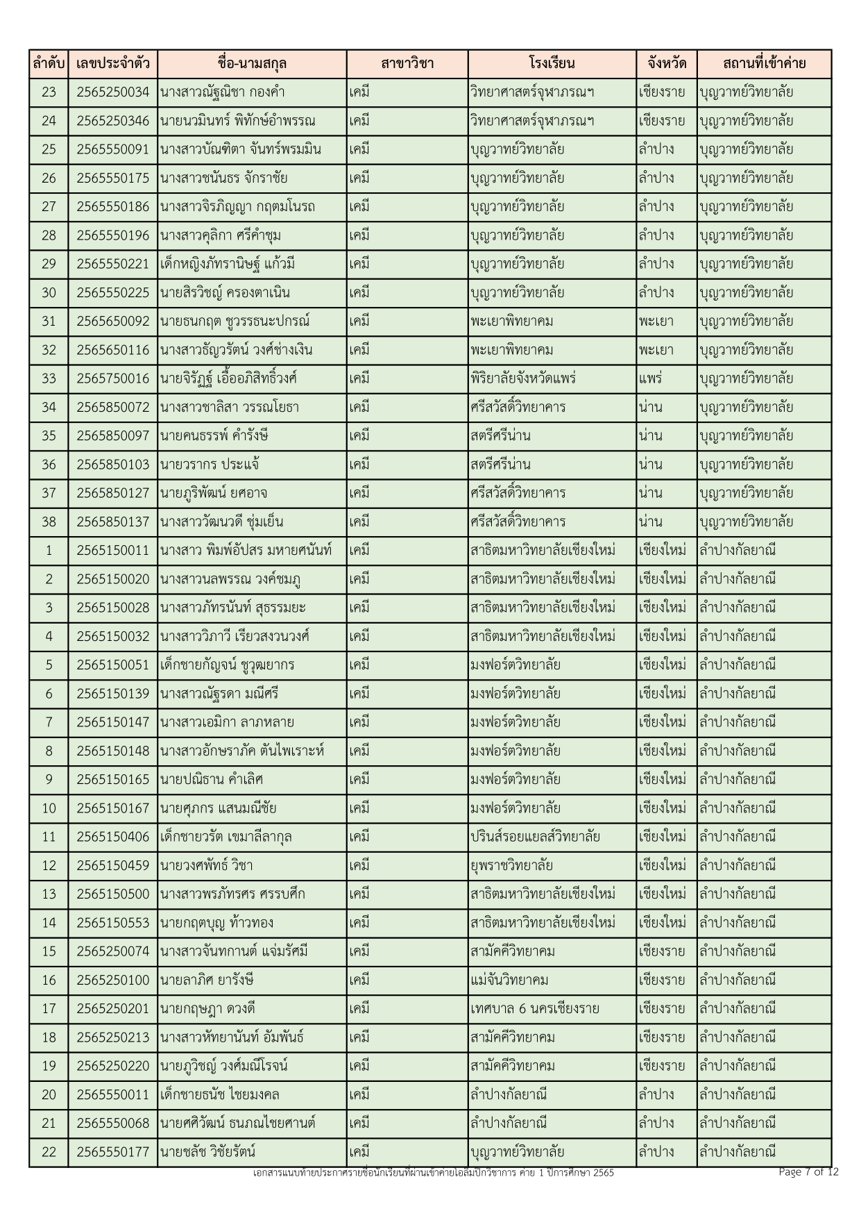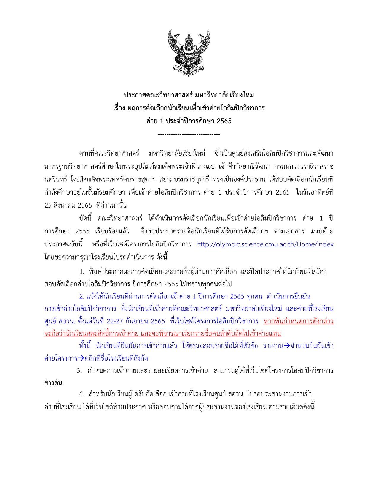 ทั้งนี้ นักเรียนที่ผ่านการคัดเลือกเข้าค่าย 1 ปีการศึกษา 2565 ทุกคน ต้องดำเนินการยืนยัน