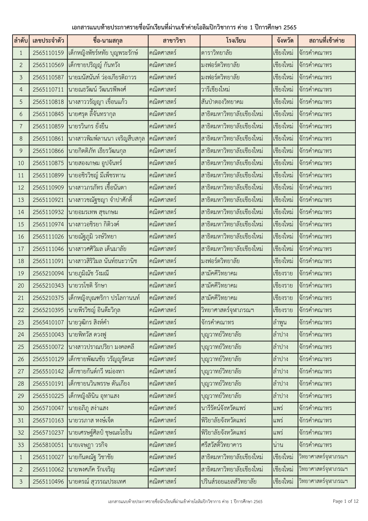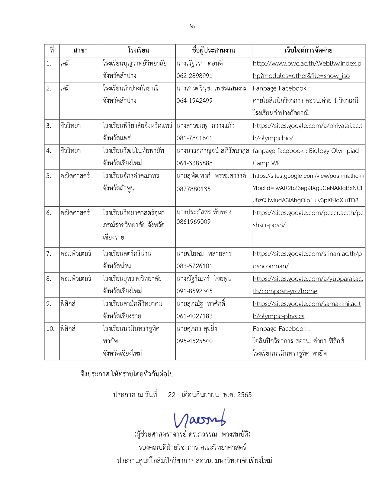 นักเรียนสามารถตรวจสอบรายชื่อได้จากภาพที่แนบมาในโพสต์นี้ หรือเข้าไปที่เว๊บไซต์ของโครงการโอลิมปิกวิชาการ คณะวิทยาศาสตร์ มหาวิทยาลัยเชียงใหม่ ตามลิ้งค์นี้ครับ