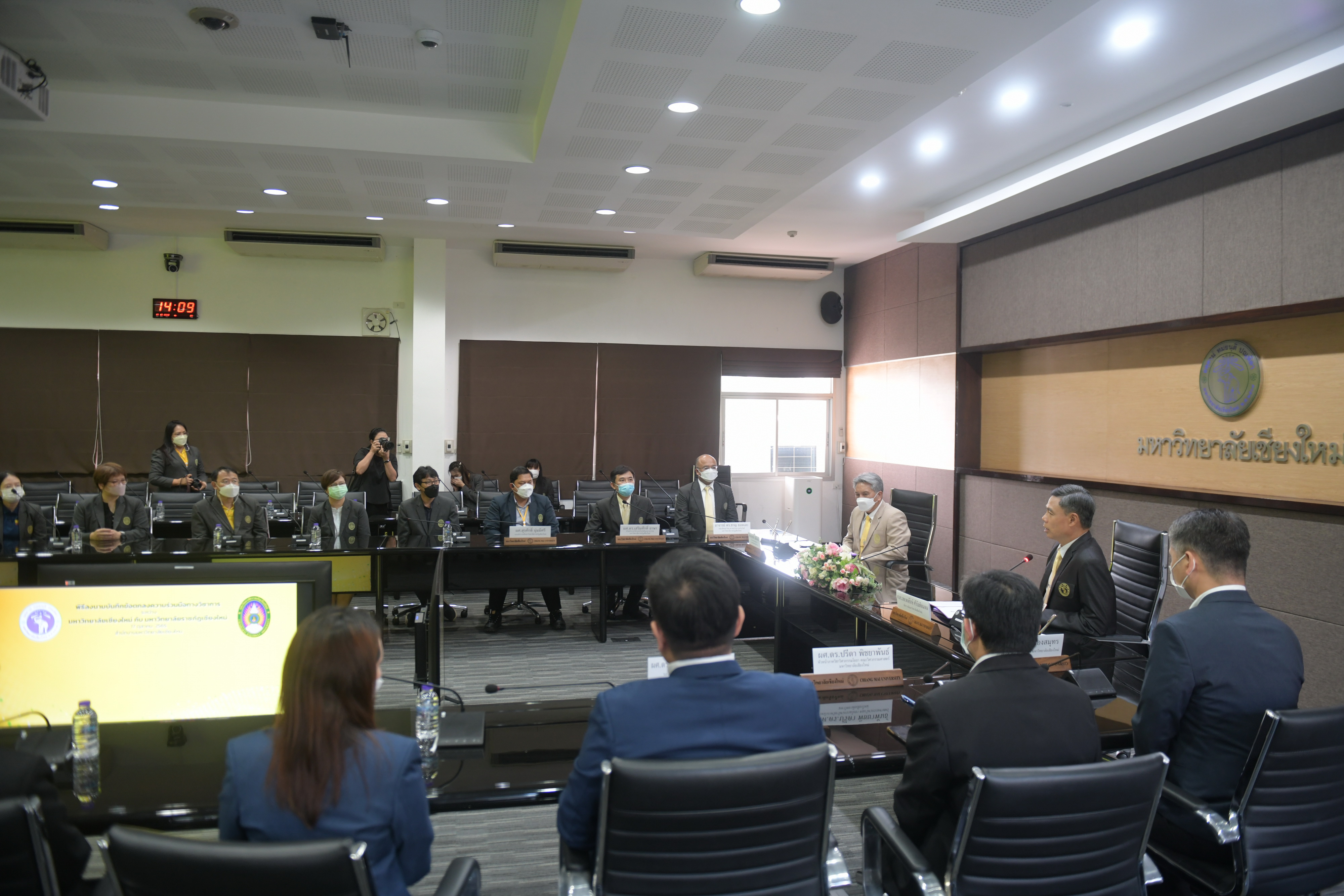 ศ.ดร.นพ.พงษ์รักษ์ ศรีบัณฑิตมงคล อธิการบดีมหาวิทยาลัยเชียงใหม่ พร้อมด้วย ผศ.ดร.ธัญญานุภาพ อานันทนะ รองอธิการบดี รศ.ดร.ธงชัย ฟองสมุทร คณบดีคณะวิศวกรรมศาสตร์ และผู้บริหารคณะฯ ให้การต้อนรับ รศ.ดร.ชาตรี มณีโกศล รักษาราชการแทนอธิการบดี มหาวิทยาลัยราชภัฏเชียงใหม่ และคณะ ในโอกาสมาเยือนมหาวิทยาลัย เพื่อร่วมพิธีลงนามบันทึกข้อตกลงความร่วมมือทางวิชาการ ระหว่าง มหาวิทยาลัยเชียงใหม่ กับมหาวิทยาลัยราชภัฏเชียงใหม่ เพื่อมุ่งผลิตบัณฑิตในสาขาหลักสูตรวิศวกรรมโยธาให้มีคุณภาพ พร้อมทั้งส่งเสริมและสนับสนุนการพัฒนาด้านวิชาการ วิจัย นวัตกรรม และบริการวิชาการ ในการเสริมสร้างศักยภาพความเข้มแข็งทางวิชาการและความเป็นเลิศ นำองค์ความรู้ทางด้านวิศวกรรมโยธาไปประยุกต์ใช้ โดยมีคณะวิศวกรรม มหาวิทยาลัยเชียงใหม่ และคณะวิทยาศาสตร์และเทคโนโลยี มหาวิทยาลัยราชภัฏเชียงใหม่ ร่วมพัฒนาวิชาการฯ เมื่อวันจันทร์ที่ 17 ตุลาคม 2565 ณ ห้องบัวเรศ คำทอง ชั้น 5 สำนักงานมหาวิทยาลัย มหาวิทยาลัยเชียงใหม่