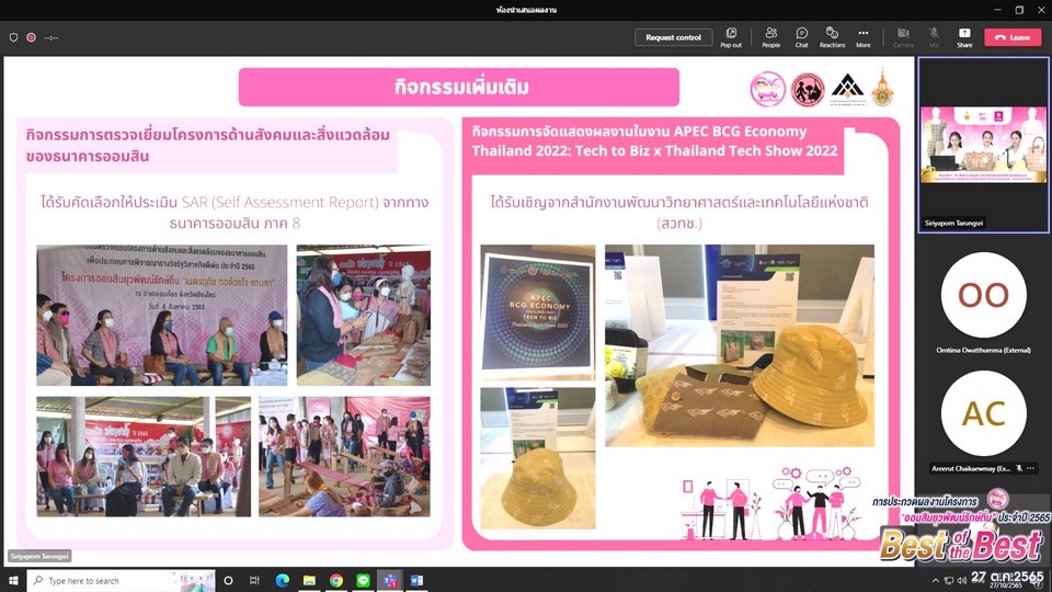 ทีม เส้นฝ้าย ลายทอใจ คว้ารางวัลรองชนะเลิศ Best of the Best ออมสินยุวพัฒน์รักษ์ถิ่น ประจำปี 2565 ระดับประเทศ