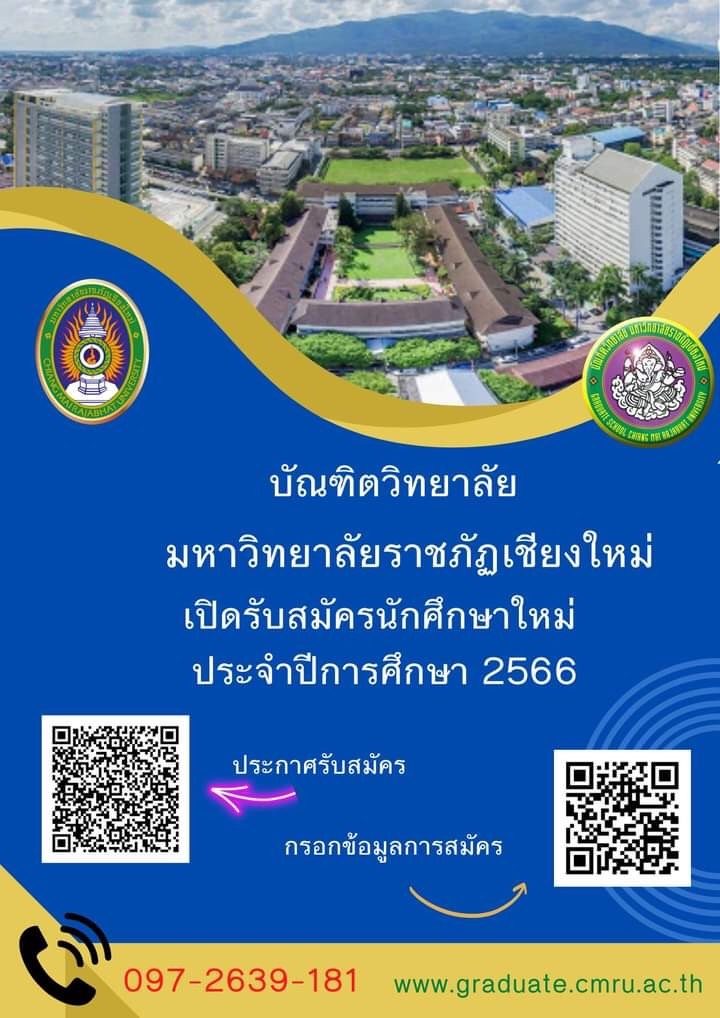 “รับสมัครเพียง 2 เดือน ตั้งแต่วันที่ 1 ธันวาคม 2565 ถึงวันที่ 31 มกราคม 2566 รายละเอียดเพิ่มเติมติดตามได้จากเว็บไซต์บัณฑิตวิทยาลัย มหาวิทยาลัยราชภัฏเชียงใหม่