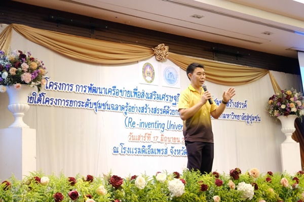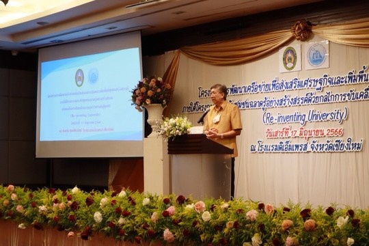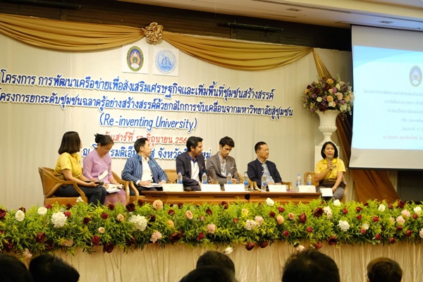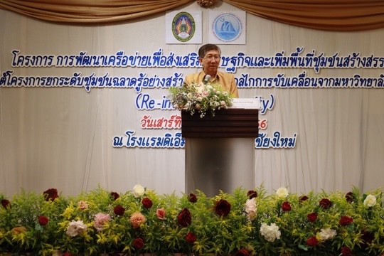 ผศ.ดร. ศุภฤกษ์ ธาราพิทักษ์วงศ์ คณบดีคณะวิทยาการจัดการ มหาวิทยาลัยราชภัฏเชียงใหม่ ชี้แจงว่า การจัดกิจกรรมครั้งนี้ เป็นโครงการย่อยภายใต้โครงการยกระดับชุมชนฉลาดรู้อย่างสร้างสรรค์ด้วยกลไก การขับเคลื่อนจากมหาวิทยาลัยสู่ชุมชน ซึ่งคณะวิทยาการจัดการมหาวิทยาลัยราชภัฏเชียงใหม่ เป็นผู้รับผิดชอบโครงการ การจัดกิจกรรมครั้งนี้เป็นการสำรวจศักยภาพเครือข่ายและวิเคราะห์ความต้องการของกลุ่มวิสาหกิจชุมชน โดยมีเวทีเสวนาความร่วมมือและทิศทางของการพัฒนาเครือข่ายเพื่อส่งเสริมเศรษฐกิจและเพิ่มพื้นที่ชุมชนสร้างสรรค์ จากเครือข่ายที่เกี่ยวข้อง ได้แก่ คุณปรกฤษฎิ์ สายหัสดี เลขาธิการหอการค้าจังหวัดเชียงใหม่ และที่ปรึกษา yec คุณอาคม สุวรรณกันทา ประธานสมาพันธ์ SME ไทยจังหวัดเชียงใหม่ คุณเจษฎาภัทร์ พันธุ์มี ผู้จัดการโครงการลานนาสแควร์ คุณนริศ บุญสถิตย์ ผู้อำนวยการโรงเรียน OTOP จังหวัดเชียงใหม่ และ คุณยุพา จันทร์ดี พัฒนาการอำเภอเมืองเชียงใหม่ โดยดำเนินการภายใต้โครงการพลิกโฉมมหาวิทยาลัย Reinventing University โดยมหาวิทยาลัยราชภัฏเชียงใหม่ เป็นมหาวิทยาลัยกลุ่มที่มุ่งเน้นการพัฒนาชุมชน เชิงพื้นที่ โดยมี ทีมนักวิจัยโครงการพัฒนาเครือข่ายเพื่อส่งเสริมเศรษฐกิจและเพิ่มพื้นที่ชุมชนสร้างสรรค์ ประกอบด้วย ผศ.ดร. กมลทิพย์ คำใจ อ.ดร.อุไร ไชยเสน อ.ดร.ทิพย์พธู กฤษสุนทร และ อ.กิรณา ยี่สุ่นแซม จากคณะวิทยาการจัดการ มหาวิทยาลัยราชภัฏเชียงใหม่