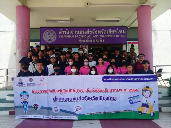 วันอาทิตย์ที่ 18 มิถุนายน 2566 นายวัชรพงศ์ ฝั้นติ๊บ ผู้อำนวยการวิทยาลัยเทคนิคเชียงใหม่ ปฏิบัติหน้าที่ผู้อำนวยการสำนักงานอาชีวศึกษาจังหวัดเชียงใหม่ มอบหมายให้ คณะครูแผนกวิชาช่างยนต์ ได้นำนักเรียน นักศึกษา เข้าร่วมโครงการนักเรียนรุ่นใหม่มีใบขับขี่โดยดำเนินโครงการร่วมกับกรมการขนส่งทางบก ในการอบรมให้ความรู้และฝึกทดสอบภาคปฏิบัติ ณ สำนักงานขนส่งจังหวัดเชียงใหม่ แห่งที่ 2 ตำบลแม่เหียะ อำเภอเมือง จังหวัดเชียงใหม่ เพื่อปลูกฝังให้ผู้รับการอบรมมีจิตสำนึกในการขับรถจักรยานยนต์ ที่ถูกต้องตามกฎจราจร รู้วิธีป้องกันอุบัติเหตุและมารยาทในการขับรถ เพื่อความปลอดภัยในการใช้รถใช้ถนน และสามารถถ่ายทอดความรู้ให้ผู้อื่นได้ โดยมีจำนวนนักเรียนนักศึกษาที่ผ่านการทดสอบทั้งสิ้น 50 คน