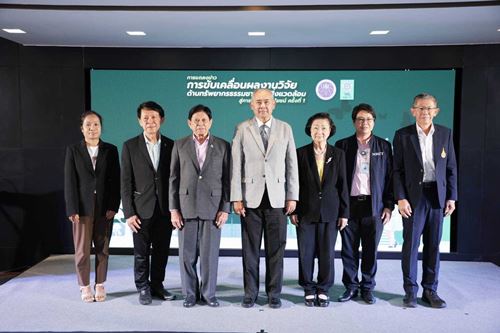 ศาสตราจารย์ ดร.สนิท อักษรแก้ว ประธานกรรมการดำเนินงานสนับสนุนการวิจัยและนวัตกรรม ประเด็นเป้าหมายด้านการพัฒนาสุขภาพ สังคม และสิ่งแวดล้อม สำนักงานการวิจัยแห่งชาติ (วช.) กล่าวว่า สำนักงานการวิจัยแห่งชาติ เล็งเห็นถึงความสำคัญที่เป็นต้นแบบการนำงานวิจัยมาใช้ประโยชน์ โดยต้องการขับเคลื่อนงานวิจัยผ่านเครือข่ายทั้ง 5 เครือข่าย ได้แก่ สำนักงานการวิจัยแห่งชาติ (วช.) กลุ่มนักวิจัย กลุ่มผู้ประกอบการ ประชาชนผู้ใช้ประโยชน์ และสื่อมวลชน ในการขับเคลื่อนงานวิจัยให้สามารถนำไปใช้ประโยชน์มากยิ่งขึ้นในอนาคต โดยอยู่บนพื้นฐานขององค์ความรู้ วิจัยและนวัตกรรม ตามแนวคิด “ค้นให้พบ ทำให้ได้ ใช้ให้เป็น” เพื่อสร้างเศรษฐกิจรากฐานให้ยั่งยืนต่อไป