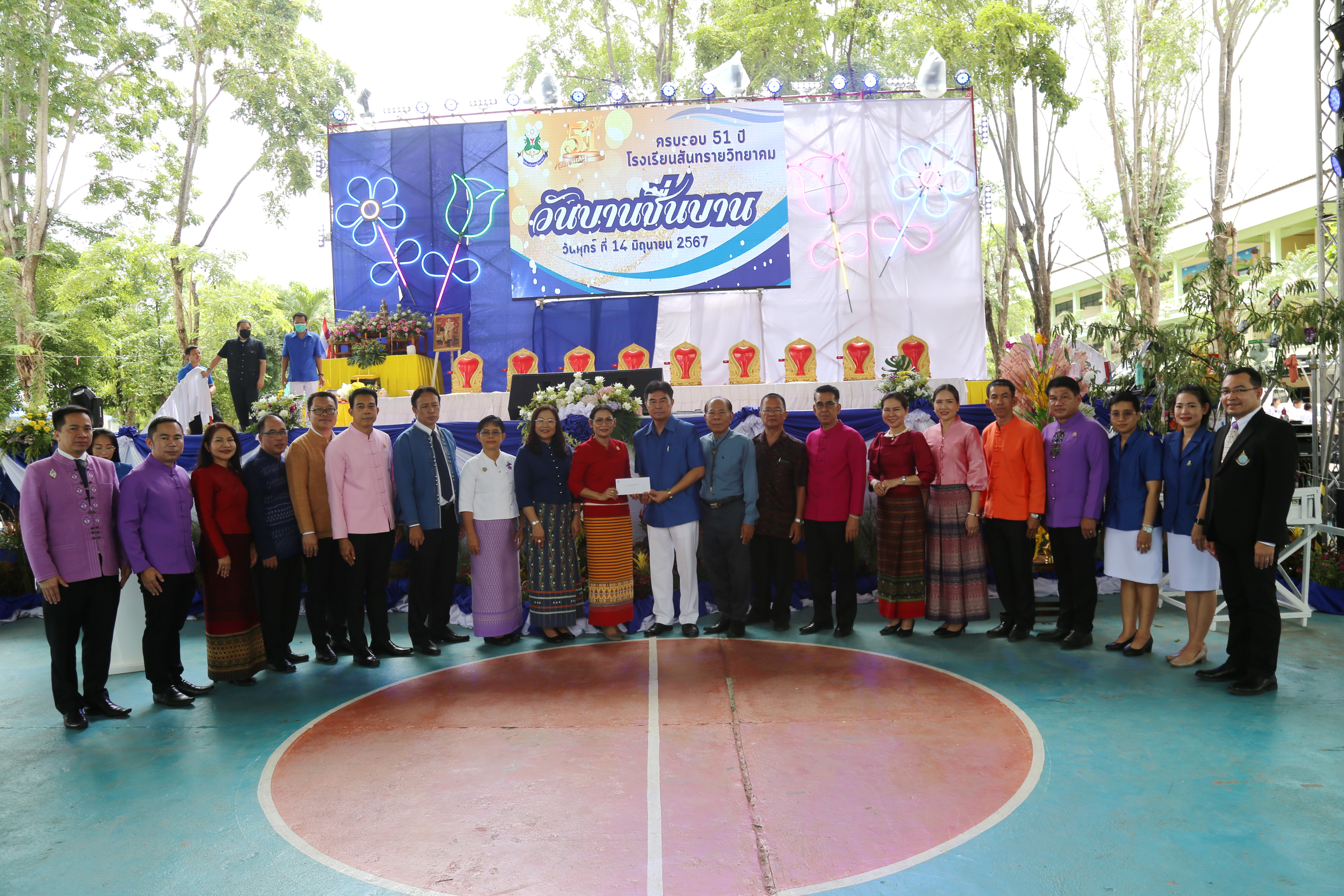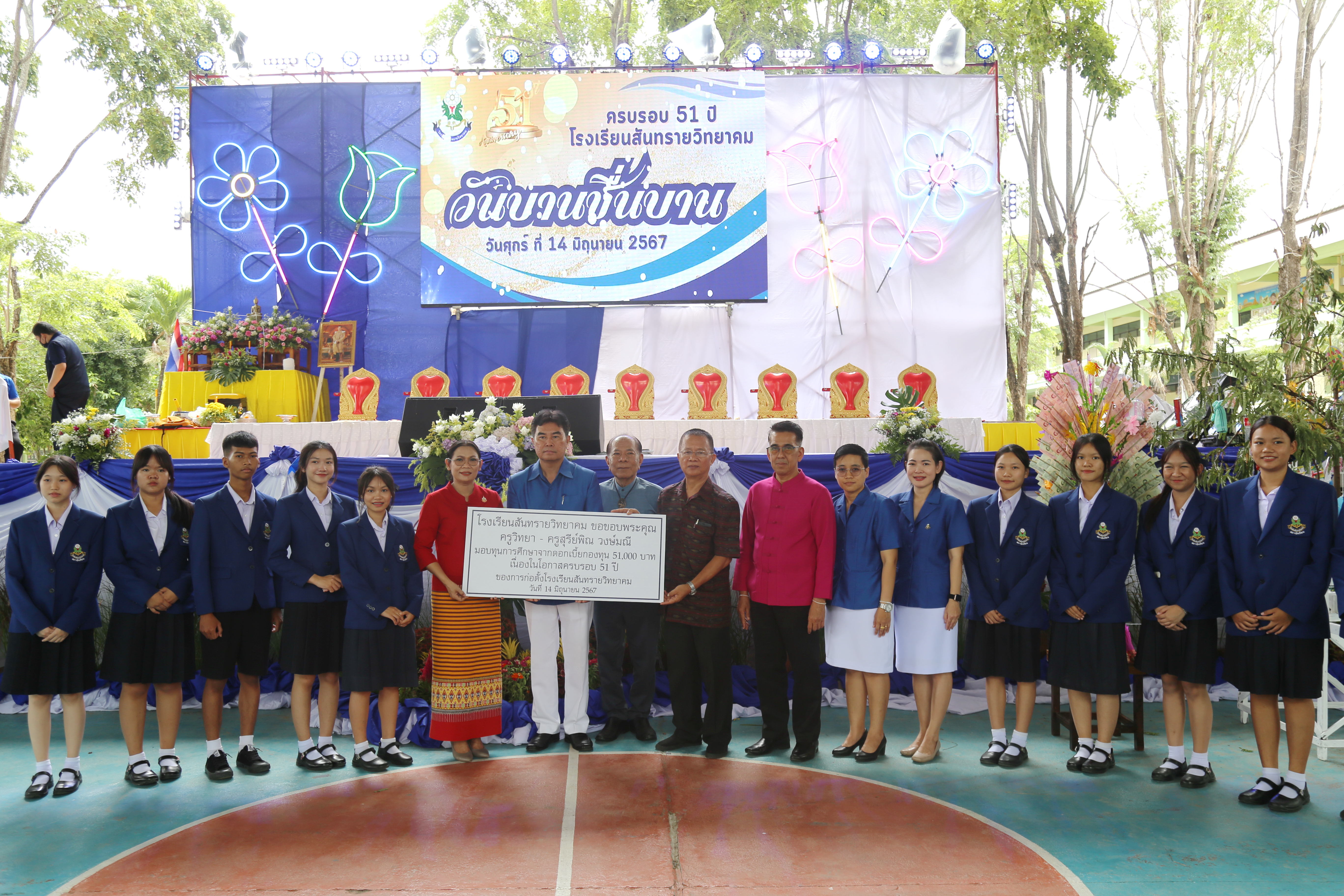 วันศุกร์ ที่ 14 มิถุนายน 2567 โรงเรียนสันทรายวิทยาคม ร่วมกับ คณะกรรมการสถานศึกษาขั้นพื้นฐาน ชมรมศิษย์เก่าโรงเรียนสันทรายวิทยาคม สมาคมผู้ปกครองและครูโรงเรียนสันทรายวิทยาคม ร่วมจัดงานวันก่อตั้งโรงเรียนครบรอบ 51 ปี “วันบานชื่นบาน” โดยได้รับเกียรติจาก ดร.อัจฉรา ช่วยนุ่ม ผู้อำนวยการ สำนักงานเขตพื้นที่การศึกษามัธยมศึกษาเชียงใหม่ เป็นประธานในพิธีทำบุญวันก่อตั้งโรงเรียน ประธานพิธีฯ ได้กล่าวชื่นชมคณะกรรมการสถานศึกษาขั้นพื้นฐานโรงเรียนสันทรายวิทยาคม และภาคีเครือข่ายที่เข้มแข็ง ทำให้เกิดความร่วมมือในการพัฒนาคุณภาพการศึกษาของโรงเรียนได้ทุกมิติ ซึ่งถือว่าเป็นจุดเด่นของโรงเรียน