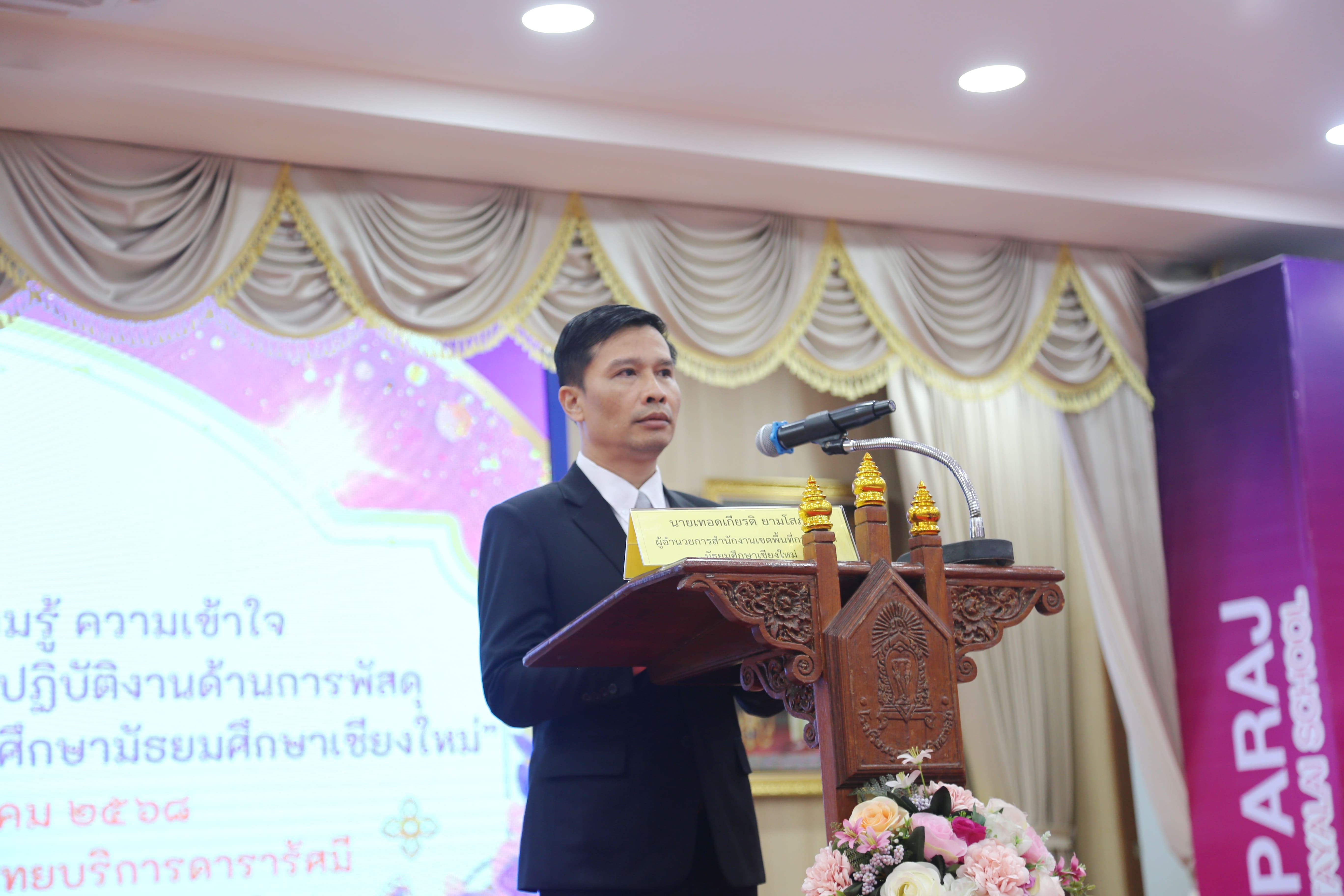 วันที่ 16 ตุลาคม 2568 นายเทอดเกียรติ ยามโสภา ผู้อำนวยการสำนักงานเขตพื้นที่การศึกษามัธยมศึกษาเชียงใหม่ เป็นประธานเปิดโครงการ “อบรมเสริมสร้างความรู้ ความเข้าใจ และพัฒนาทักษะด้านการพัสดุ สำหรับผู้ปฏิบัติงานด้านการพัสดุของโรงเรียน ในสังกัดสำนักงานเขตพื้นที่การศึกษามัธยมศึกษาเชียงใหม่” ณ ห้องประชุมดารารัศมี อาคารศูนย์วิทยบริการดารารัศมี โรงเรียนยุพราชวิทยาลัย อำเภอเมือง จังหวัดเชียงใหม่