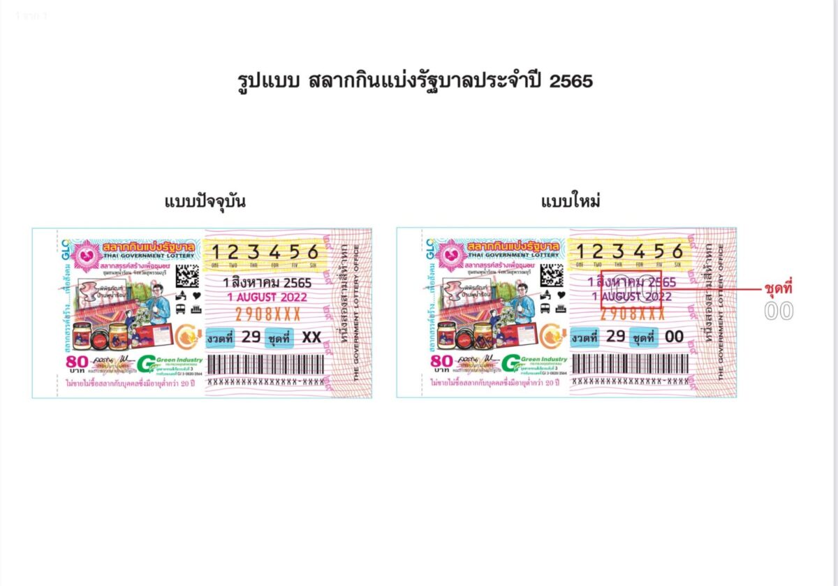 เพื่อเป็นการแก้ไขปัญหาดังกล่าว สำนักงานสลากฯ จึงได้ปรับรูปแบบของข้อมูลบนใบสลากจากเดิม “ชุดที่” จะอยู่ใต้ “งวดวันที่” ปรับเปลี่ยนเป็น พิมพ์หมายเลข “ชุดที่” เพิ่มโดยพิมพ์ทับลงบน “งวดวันที่” ซึ่งจะทำให้ เห็นเลขชุดได้อย่างชัดเจน ในตำแหน่งเดียวกับงวดวันที่ ซึ่งเป็นส่วนที่ผู้โพสต์ขายจะต้องเปิดเผยให้ผู้ซื้อเห็นได้อย่างชัดเจนอยู่แล้ว นอกเหนือจากหมายเลขบนใบสลาก เมื่อผู้ซื้อสลากทราบหมายเลขชุดก็จะสามารถตรวจสอบได้ว่า สลากฉบับนั้นๆ ได้ถูกนำไปขายที่อื่นด้วยหรือไม่ นอกจากนี้ ยังเป็นการป้องกันการปลอมแปลงบนใบสลากแล้วนำไปหลอกขายให้กับประชาชนอีกด้วย ทั้งนี้ รูปแบบดังกล่าวจะเริ่มพิมพ์ออกจำหน่ายตั้งแต่งวดวันที่ 1 สิงหาคม 2565 เป็นต้นไป