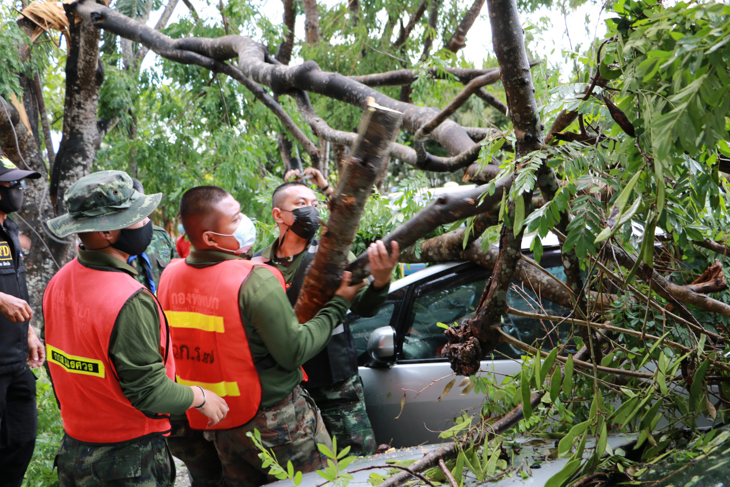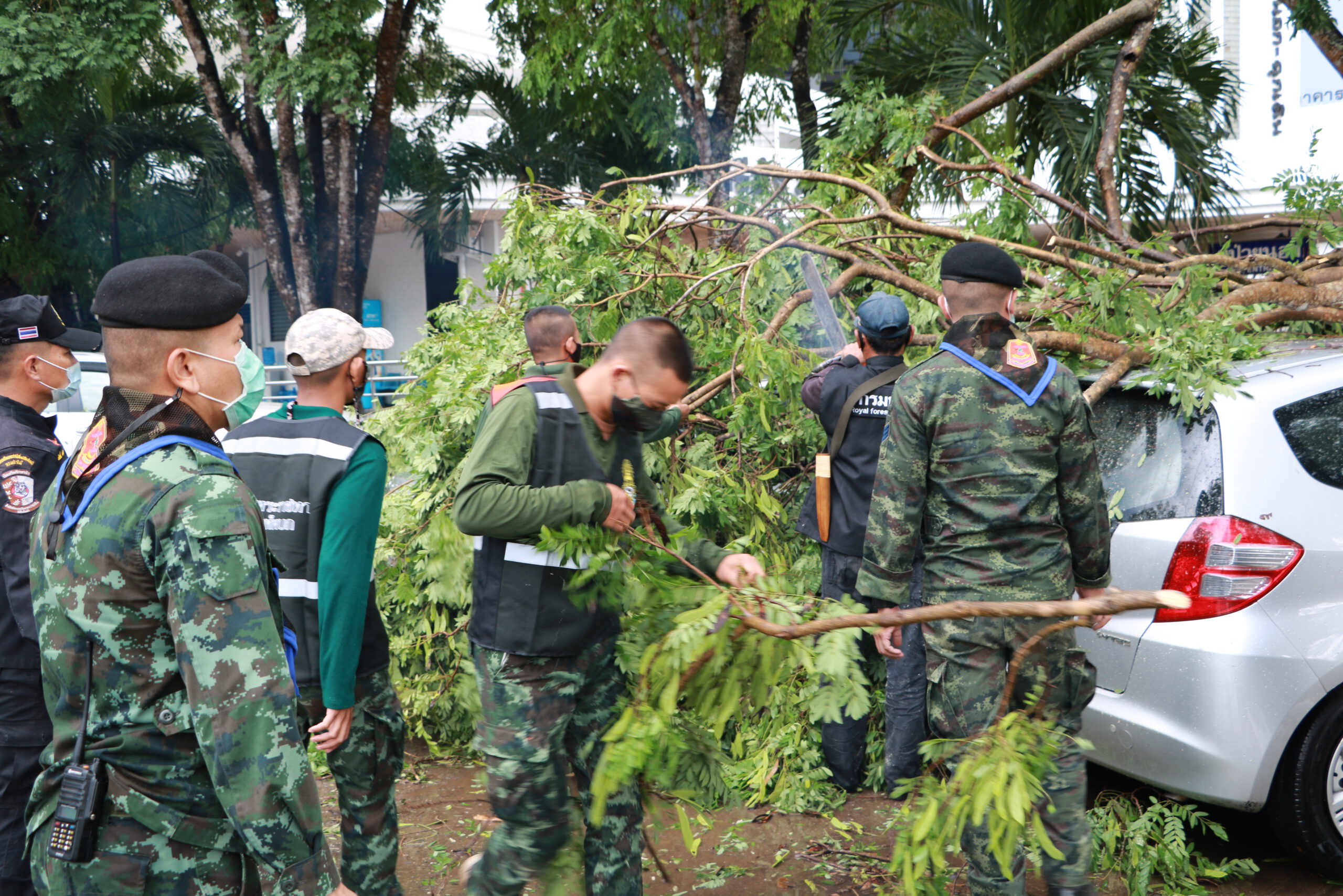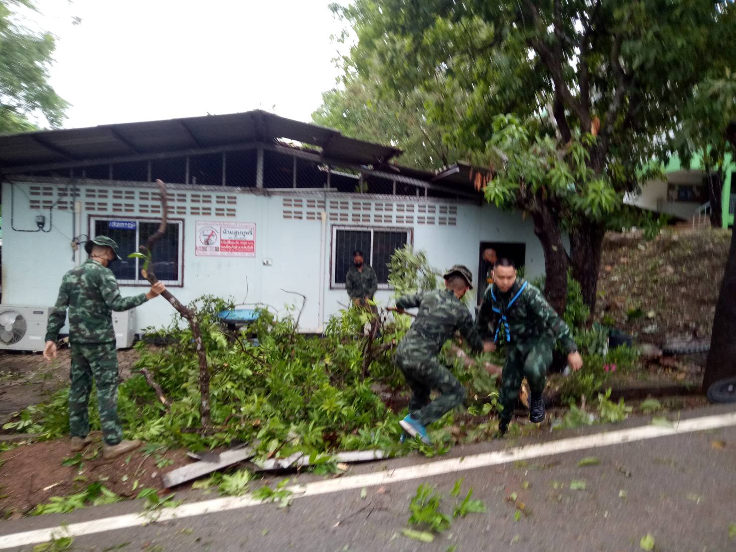 ร้อย.ร.721 จัด กำลังพล ชป.บรรเทาสาธารณภัยและช่วยเหลือประชาชน ให้ความช่วยเหลือโรงเรียน อบจ.บ้านจองคำ ต.จองคำ อ.เมือง ที่มีต้นไม้ขนาดใหญ่หักโค่นทับอาคารที่พักอาศัย และรถยนต์ของบุคคลากรครู ทางโรงเรียนฯได้รับความเสียหาย จึงได้ทำการตัดต้นไม้ที่หักโค่นและเคลื่อนย้ายต้นไม้ขนาดใหญ่ออกจากพื้นที่