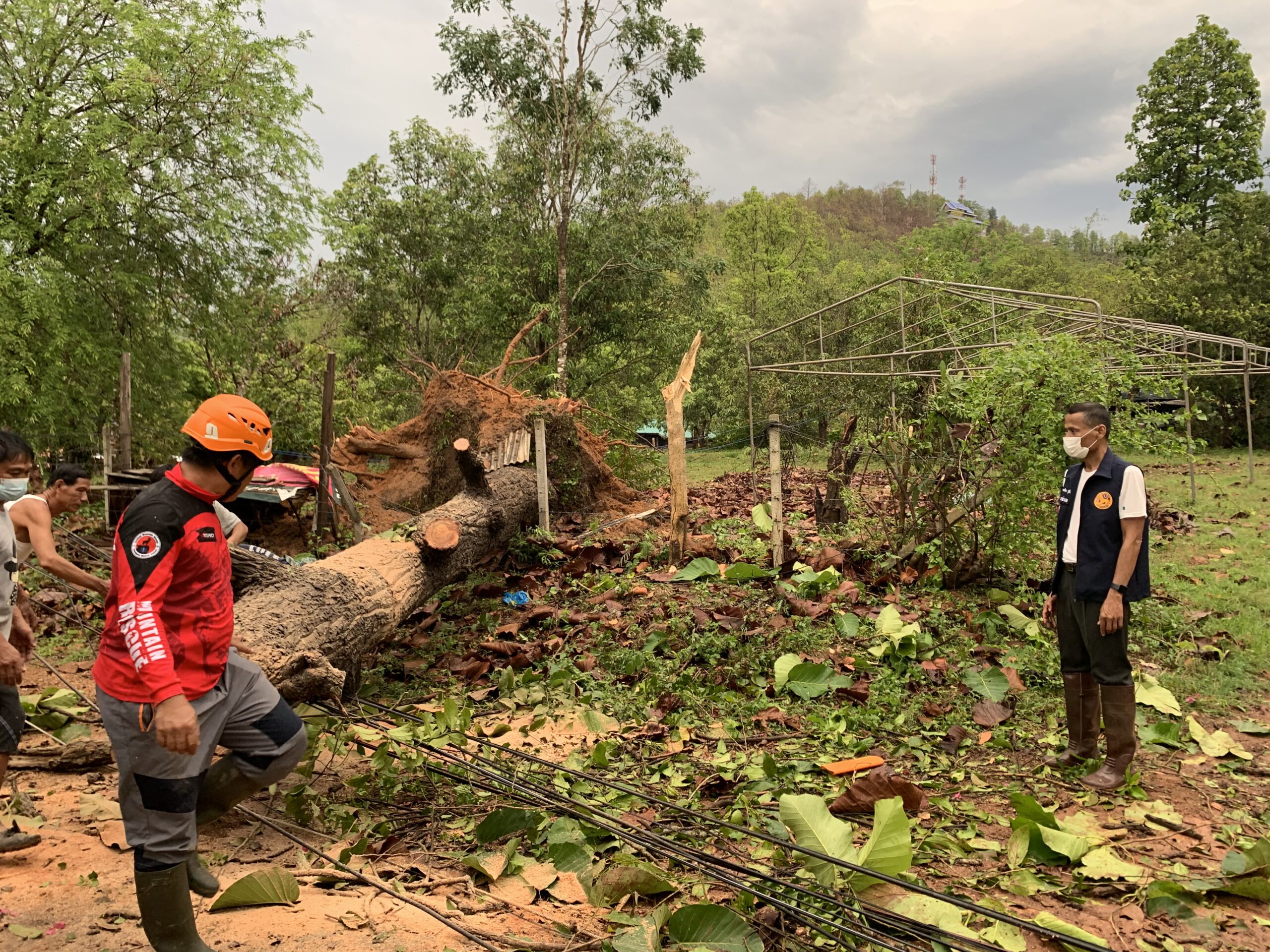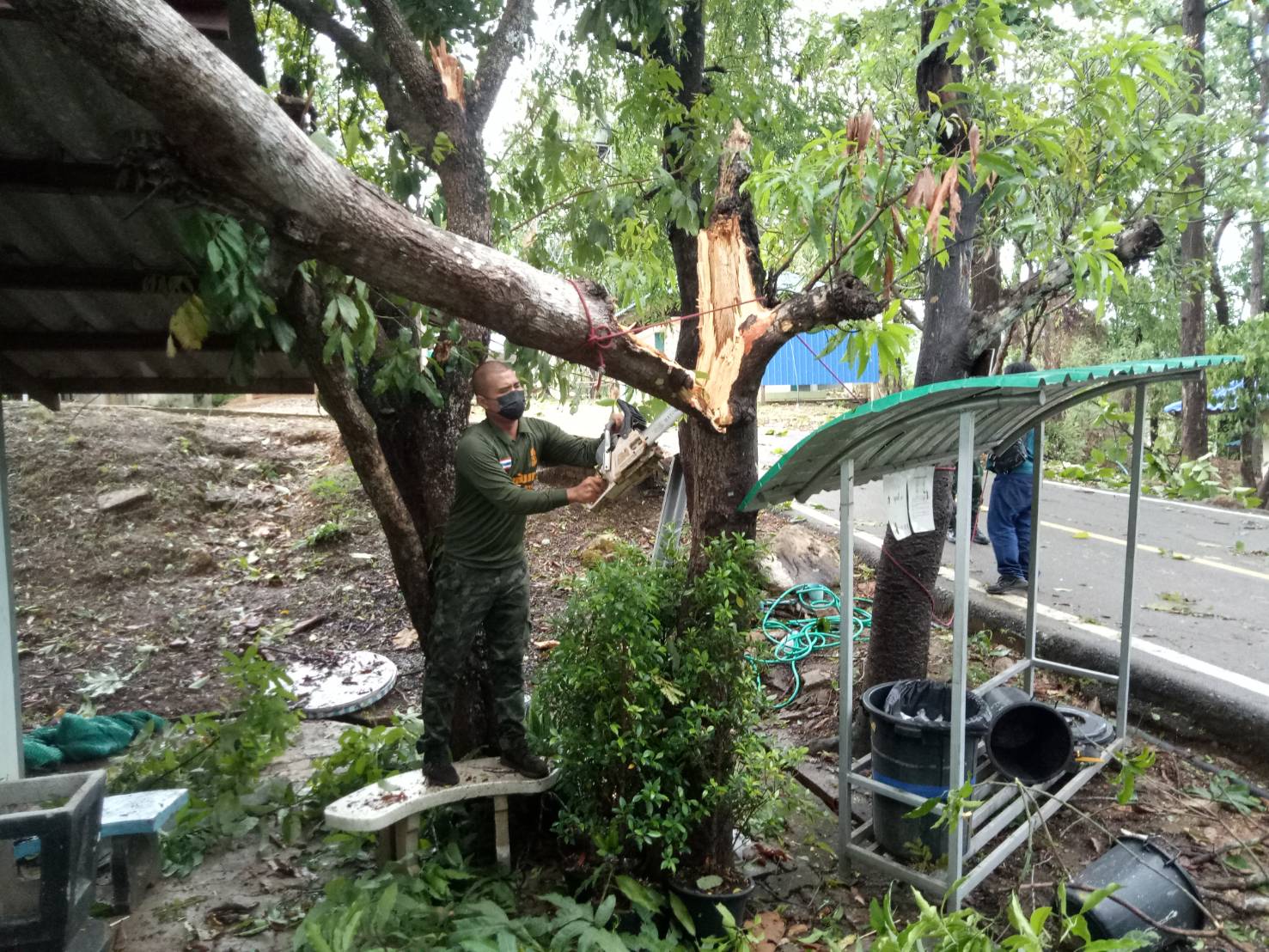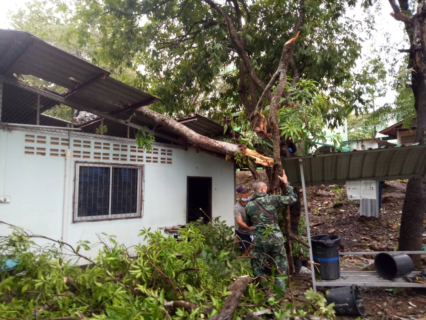 ร้อย.ร.721 จัด กำลังพล ชป.บรรเทาสาธารณภัยและช่วยเหลือประชาชน ให้ความช่วยเหลือโรงเรียน อบจ.บ้านจองคำ ต.จองคำ อ.เมือง ที่มีต้นไม้ขนาดใหญ่หักโค่นทับอาคารที่พักอาศัย และรถยนต์ของบุคคลากรครู ทางโรงเรียนฯได้รับความเสียหาย จึงได้ทำการตัดต้นไม้ที่หักโค่นและเคลื่อนย้ายต้นไม้ขนาดใหญ่ออกจากพื้นที่