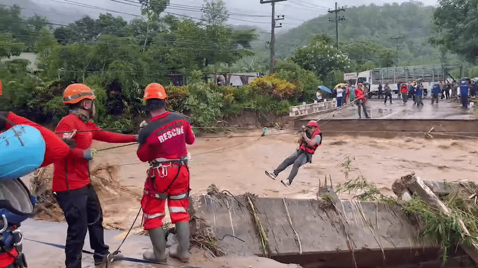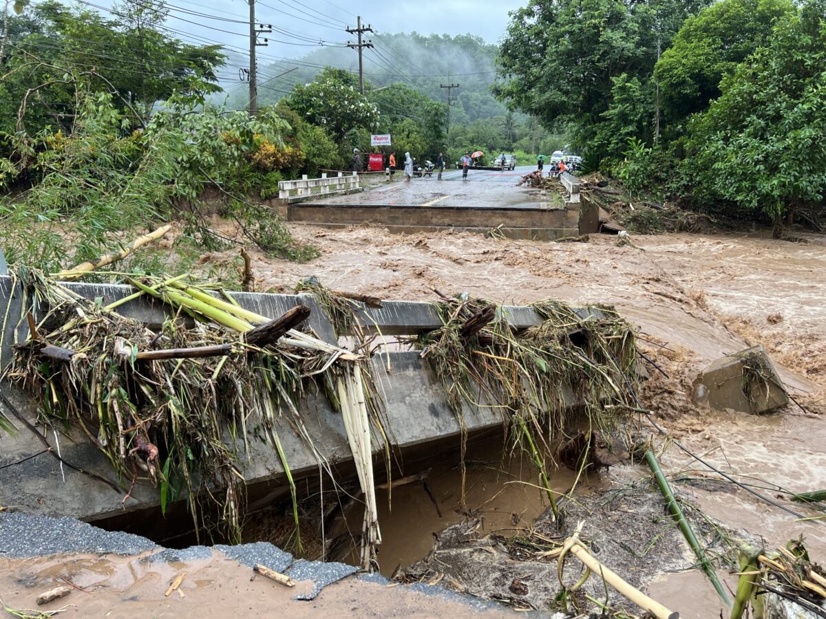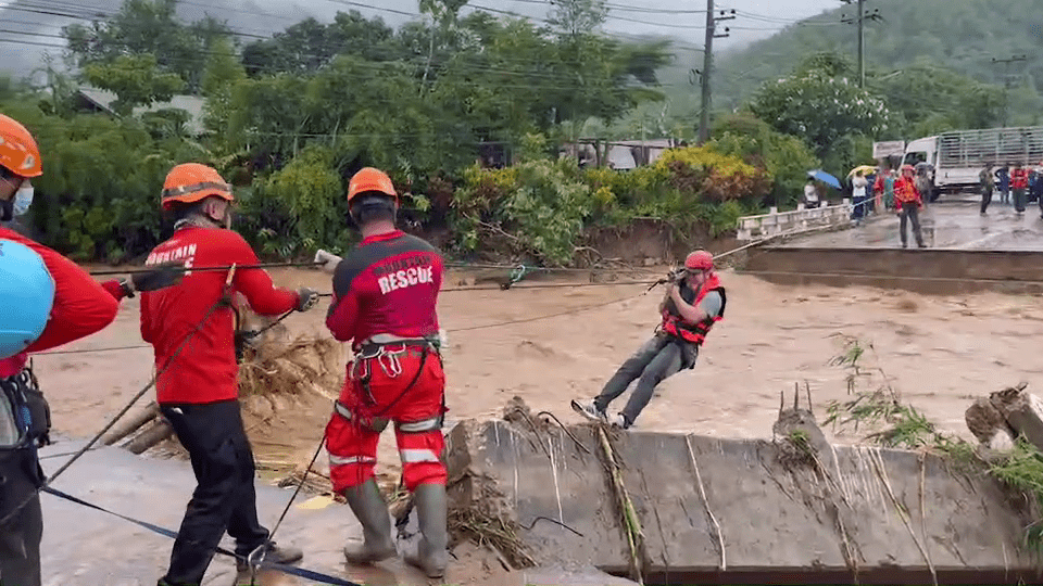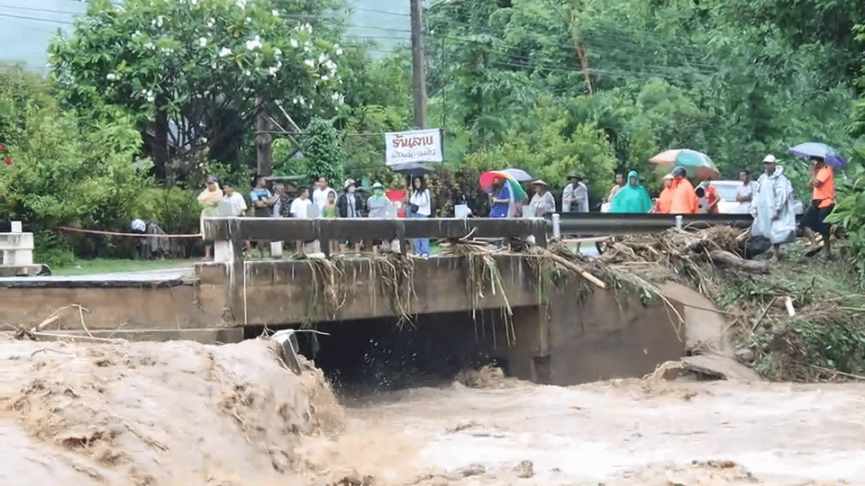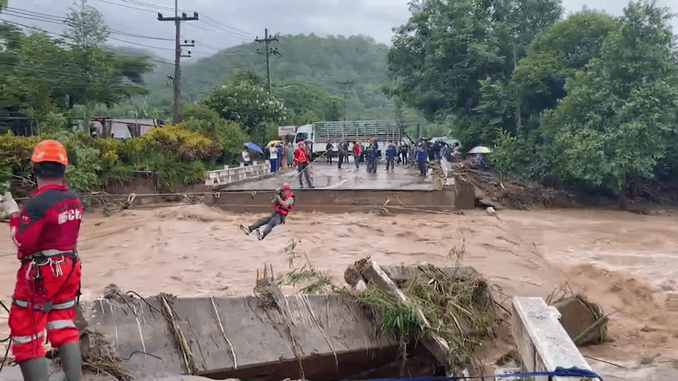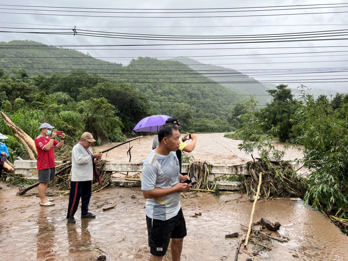 เมื่อวันที่ 1 กรกฎาคม 2565 เวลา 12.00 น. เจ้าหน้าที่ชุดกู้ภัยของป้องกันและบรรเทาสาธารณภัยจังหวัดแม่ฮ่องสอน รวมกับทหารจากหน่วยเฉพาะกิจ กรมหทารราบที่ 7 , เจ้าหน้าที่ฝ่ายบรรเทาสาธารณภัยเทศบาลเมืองแม่ฮ่องอน , เจ้าหน้าที่ฝ่ายบรรเทาสาธารณภัย อบต.ผาบ่อง , กองร้อยตำรวจตระเวนชายแดนที่ 336 , เจ้าหน้าที่หน่วยป้องกันและพัฒนาป่าไม้แม่ฮ่องสอน สังกัดสำนักจัดการทรัพยากรป่าไม้ที่ 1 สาขาแม่ฮ่องสอนและเจ้าหน้าที่ฝ่ายปกครองอำเภอเมืองแม่ฮ่องสอน ได้เข้าดำเนินการลำเลียงประชาชนที่ติดอยู่ฝั่งขาเข้าตัวเมืองแม่ฮ่องสอน เนื่องจากสะพานขาด โดยการลำเลียงผ่านเชือกหน่วยกู้ภัย นอกจากนั้น ยังได้เร่งเข้าไปให้การช่วยเหลือราษฎรที่ได้รับผลกระทบจากน้ำป่าไหลหลากและน้ำท่วม ในพื้นที่ ต.ผาบ่อง , ต.จองคำ และ ต.ปางหมู อ.เมือง ฯ
