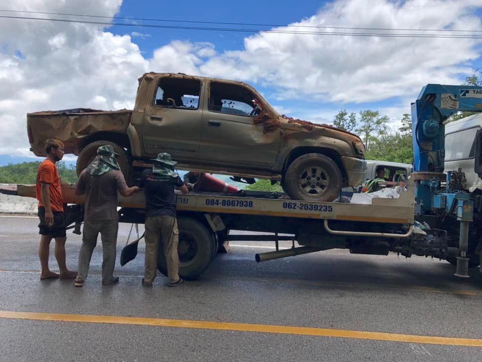 ซึ่งพบว่าบริเวณที่เกิดเหตุนั้นเป็นช่วงทางโค้ง พบรถยนต์กระบะโตโยต้า 4 ประตู ยี่ห้อโตโยต้า หมายเลขทะเบียน กข-6864 ลำพูน เสียหลักตกลงไปลึกกว่า 10 เมตร เจ้าหน้าที่จึงเข้าให้การช่วยเหลือและปฐมพยาบาลเบื้องต้นให้กับ นายประมวล ยะกันมูล ผู้ประสบเหตุ พร้อมกับประสานขอรถชักลากจากเอกชนมาทำการชักลากรถขึ้นมาได้เรียบร้อย ส่วนนายประมวลนั้นได้รับบาดเจ็บเพียงเล็กน้อย สาเหตุที่เกิดขึ้นมาจากสภาพถนนลื่น ประกอบกับมีฝนตกลงมาต่อเนื่องประกอบกับช่วงทางโค้งรถมีอาการลื่นไถลจนไม่สามารถควบคุมรถได้จนเกิดเหตุดังกล่าว