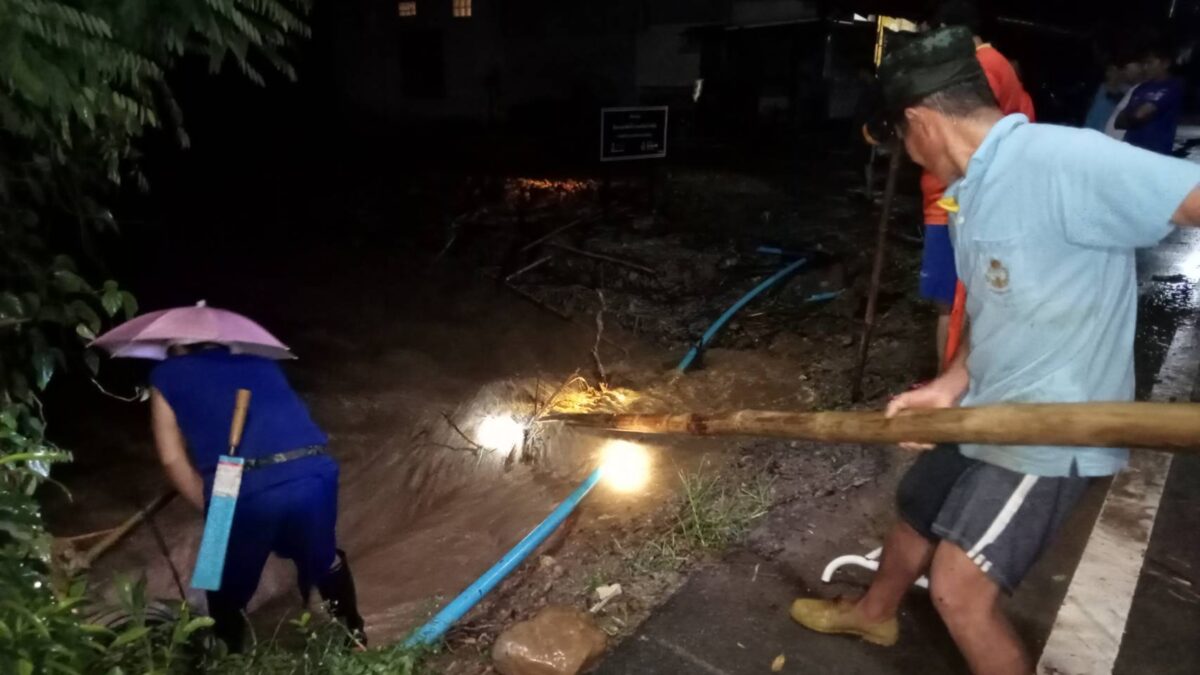 อุทกภัย ฝนตกหนักในพื้นที่จังหวัดแม่ฮ่องสอน ชาวบ้านเดือดร้อนได้รับความเสียหายกว่า 20 หลังคาเรือน ช่วยกันนำเศษไม้ออกจากท่อ ไม่ได้นอนกันทั้งคืน ผลกระทบจากน้ำป่าเข้าท่วมชุมชน (ชุมชนบ้านผาบ่องเหนือ)