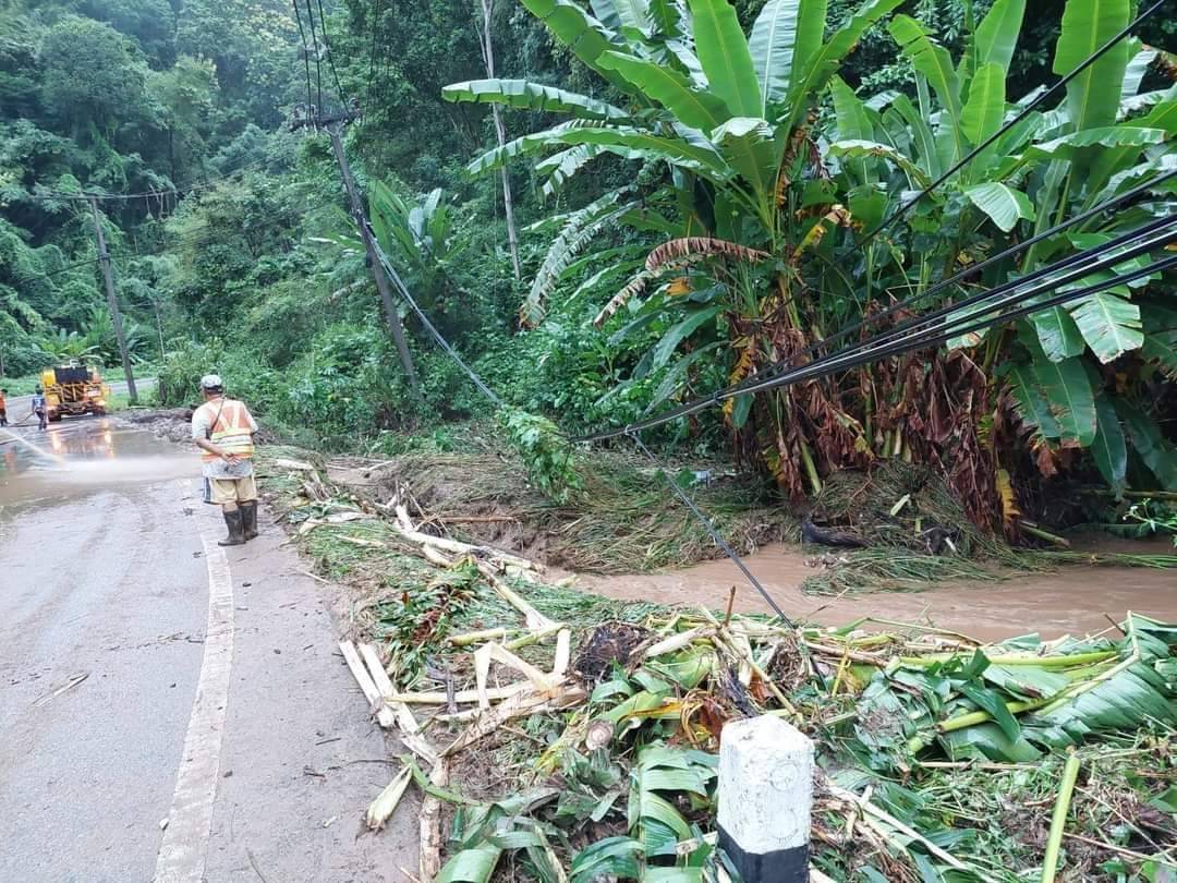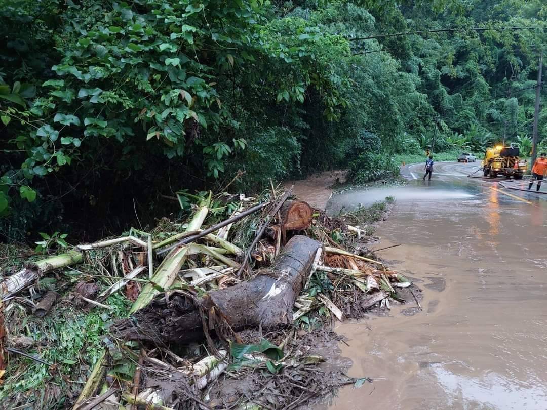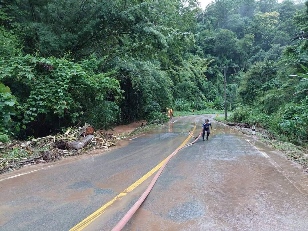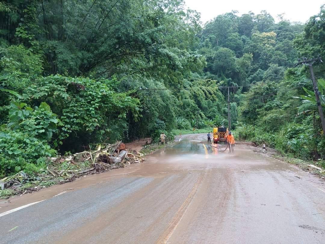 แขวงทางหลวงแม่ฮ่องสอน หมวดทางหลวงแม่ลาน้อย เข้าดำเนินการตัดต้นไม้-กิ่งไม้และเคลื่อนย้ายท่อนไม้ออกจากผิวจราจร พร้อมตั้งป้าย-วางกรวยเตือน