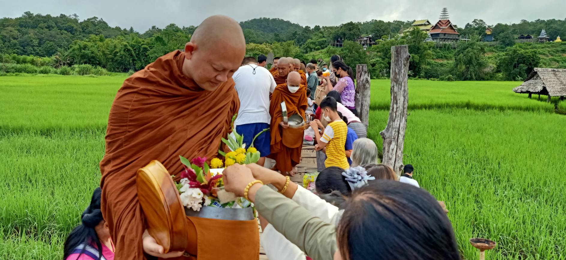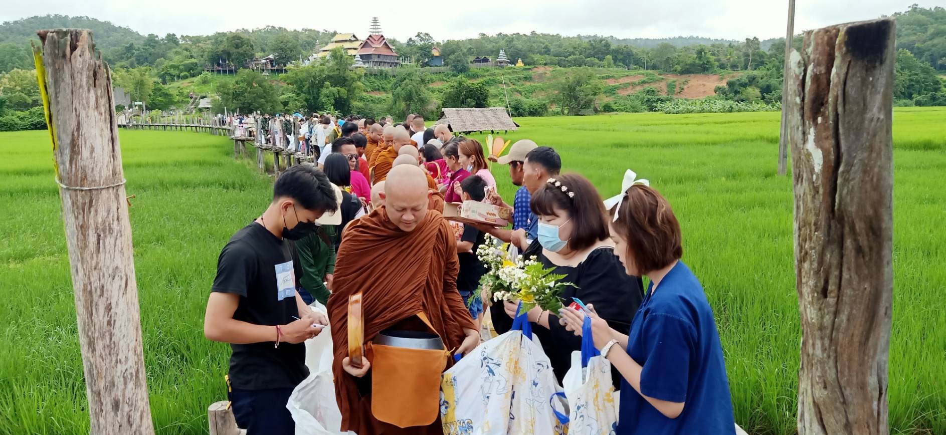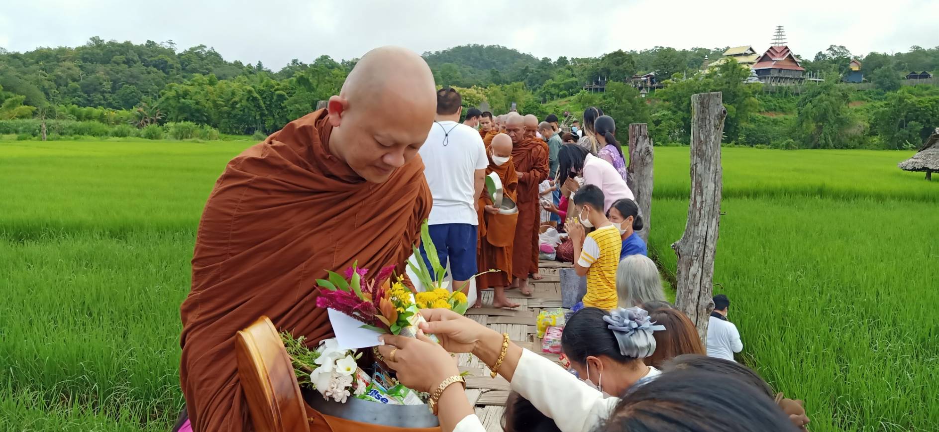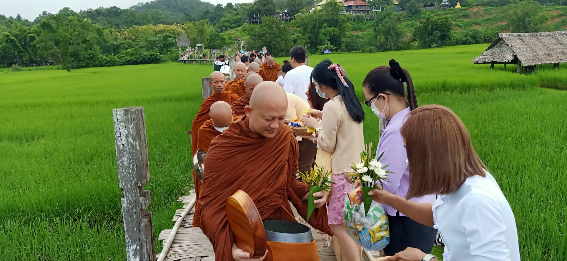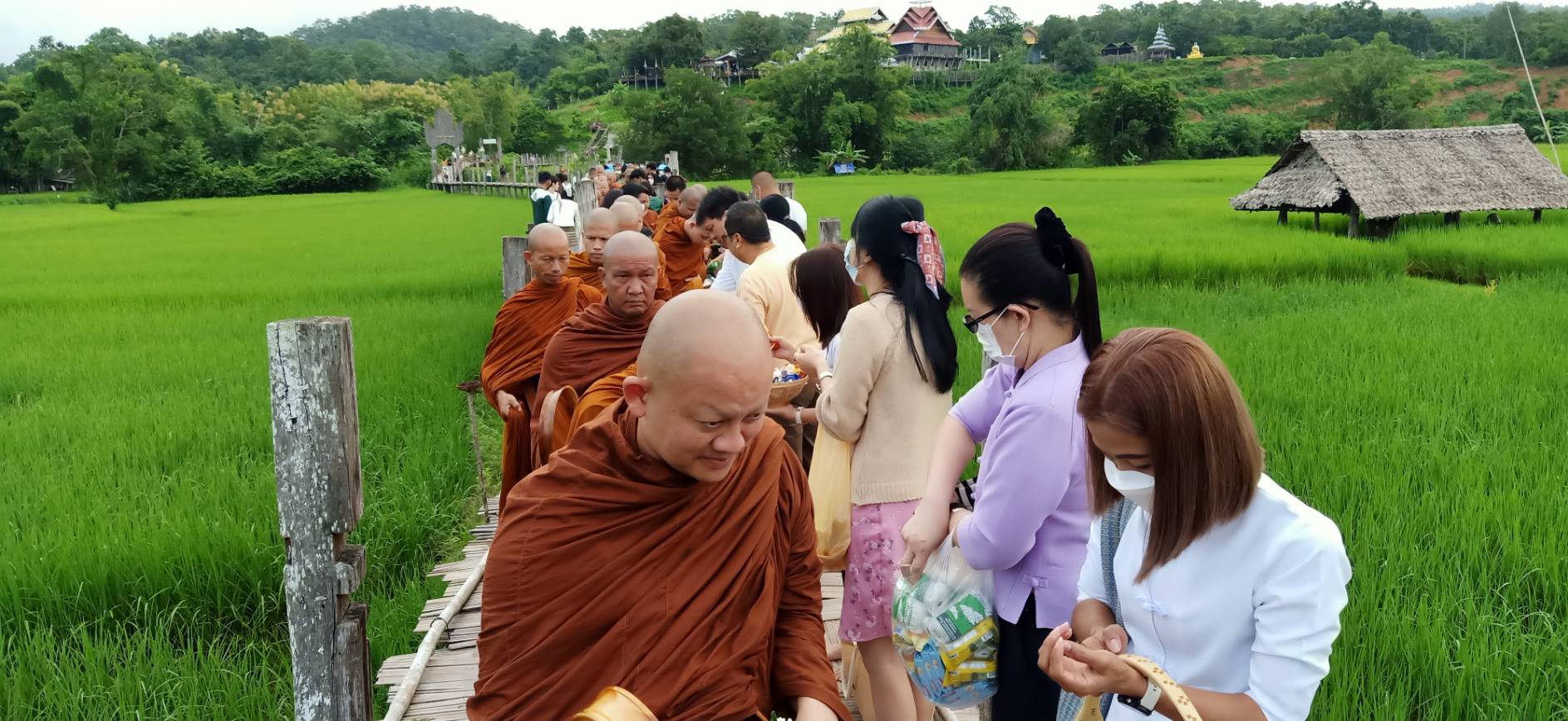 ตักบาตรสะพานซูตองเป้ เทศกาลออกพรรษา เนืองแน่น