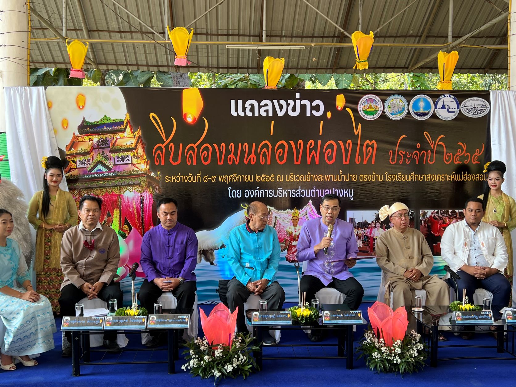 เมื่อวันที่ 1 พฤศจิกายน 2565 นายเชษฐา โมสิกรัตน์ ผู้ว่าราชการจังหวัดแม่ฮ่องสอน นายอุกฤษฏ์ แสงงาม นายกองค์การบริหารส่วนตำบลปางหมู นายพงษ์พีระ ชูชื่น นายอำเภอเมืองแม่ฮ่องสอน นายภานุเดช ไชยสกูล นายกสมาคมธุรกิจการท่องเที่ยวแม่ฮ่องสอน และ ทีมงานองค์การบริหารส่วนตำบลปางหมู เปิดแถลงข่าวเตรียมจัดงานประเพณีสิบสองมนล่องผ่องไต (งานประเพณีลอยกระทงไทใหญ่ ) เพื่อสืบสานประเพณีวัฒนธรรมของชาวไทยใหญ่ ระหว่างวันที่ 8-9 พฤศจิกายน 2565 นี้