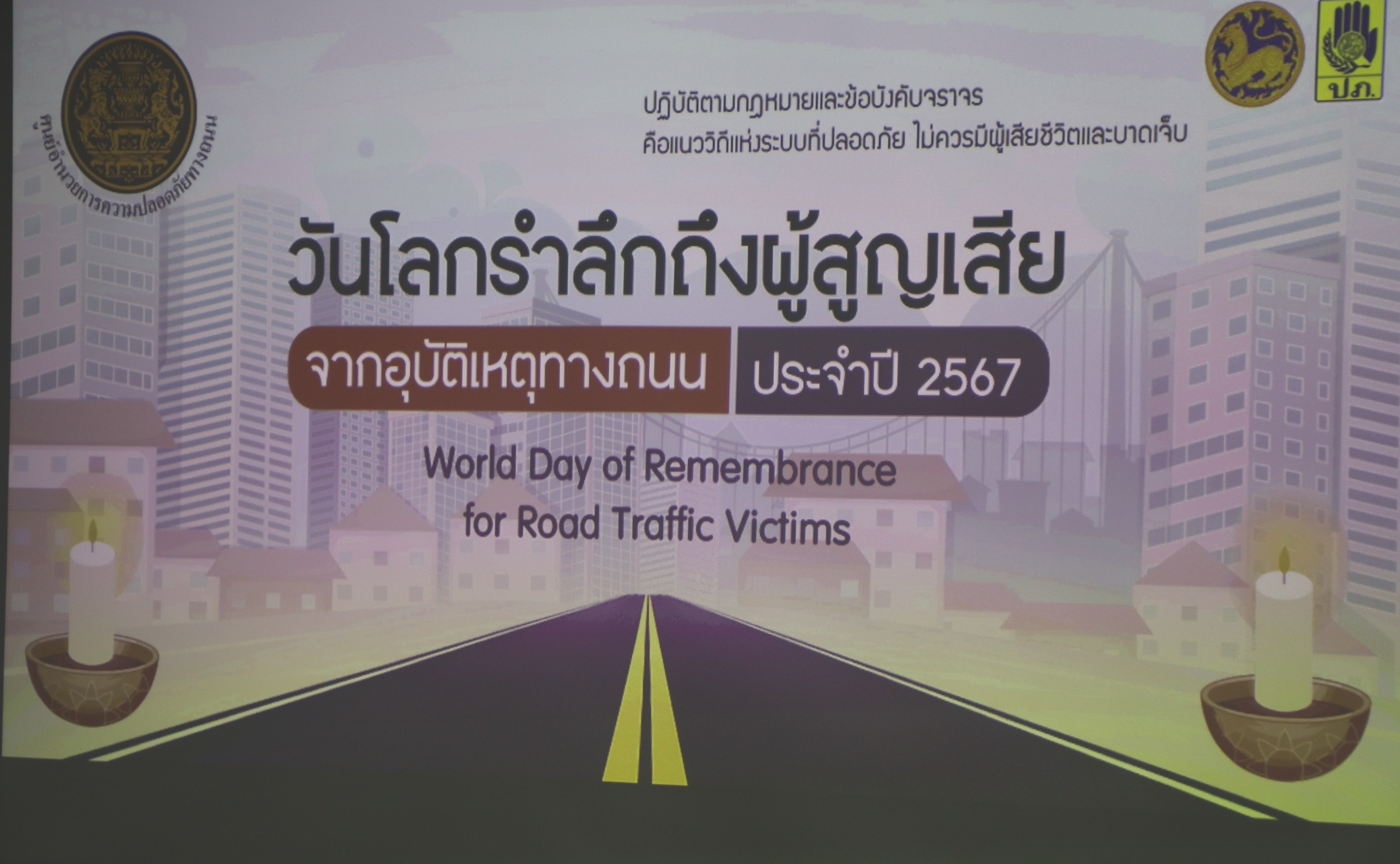 สืบเนื่องจากเมื่อวันที่ 15 มกราคม 2556 คณะรัฐมนตรีได้มีมติเห็นชอบให้กระทรวงมหาดไทย โดยศูนย์อำนวยการความปลอดภัยทางถนน ร่วมกับหน่วยงานทุกภาคส่วนจัดกิจกรรมรณรงค์เนื่องในวันโลกรำลึกถึงผู้สูญเสียจากอุบัติเหตุทางถนน World Day of Remembrance for Road Traffic Victims ในวันอาทิตย์สัปดาห์ที่สามของเดือนพฤศจิกายนของทุกปี ซึ่งในปี พ.ศ. 2567 ตรงกับวันอาทิตย์ที่ 17 พฤศจิกายน 2567 โดยองค์การอนามัยโลกและองค์กรความร่วมมือเพื่อความปลอดภัยทางถนนแห่งสหประชาชาติ ได้สนับสนุนให้ประเทศต่าง ๆ ทั่วโลก จัดกิจกรรมเพื่อรำลึกถึงเหยื่อผู้สูญเสียชีวิตและครอบครัว รวมถึงผู้บาดเจ็บจากอุบัติเหตุทางถนนในช่วงเวลาที่ผ่านมา เพื่อให้ประชาชนทั่วไป มีความตระหนักและป้องกันมิให้อุบัติเหตุทางถนนเกิดขึ้น และกำหนดให้ทุกจังหวัดมีการจัดกิจกรรมวันโลกรำลึกถึงผู้สูญเสียจากอุบัติเหตุทางถนน World Day of Remembrance for Road Traffic Victims เพื่อเป็นการป้องกันลดอุบัติเหตุทางถนนในพื้นที่ เป็นการสร้างความตระหนัก และเป็นการแสดงออกเชิงสัญลักษณ์ถึงความร่วมมือ ร่วมใจ ขับเคลื่อนงานด้านความปลอดภัยทางถนน