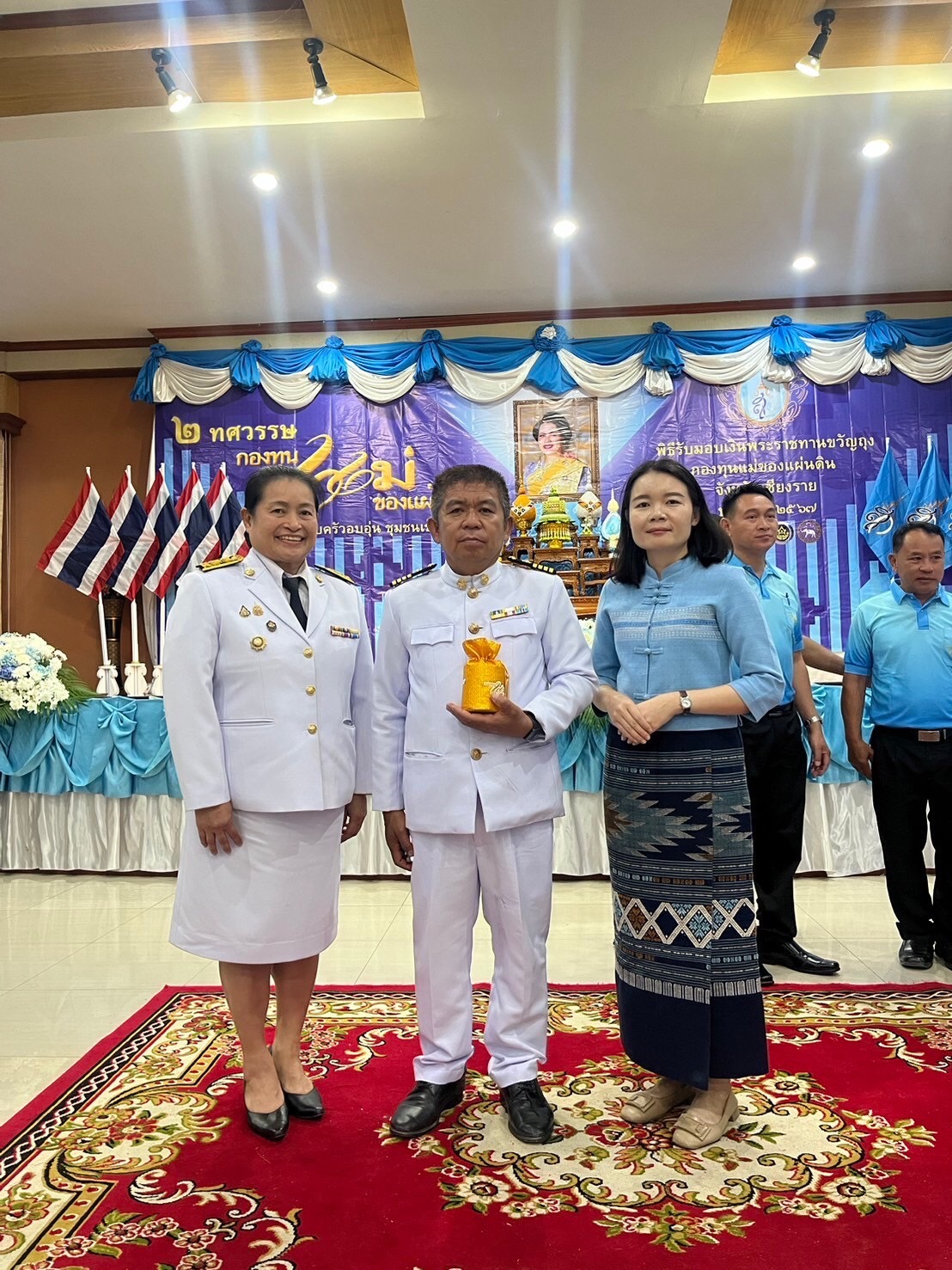 เมื่อวันที่ 21 พฤศจิกายน 2567 นายปฤษฎางค์ สามัคคีนิชย์ นายอำเภอแม่สรวย มอบหมายให้ นางสาวสุภาภรณ์ ยาลังคำ ปลัดอำเภอหัวหน้ากลุ่มงานบริหารงานปกครอง ร่วมพิธีมอบเงินพระราชทานขวัญถุงกองทุนแม่ของแผ่นดิน ประจำปี 2567 พร้อมทอดผ้าป่าสานต่อพระราชปณิธานสมเด็จพระนางเจ้าสิริกิติ์ พระบรมราชินีนาถ พระบรมราชชนนีพันปีหลวง จัดขึ้นเพื่อเทิดพระเกียรติ และสำนึกในพระมหากรุณาธิคุณของสมเด็จพระนางเจ้าสิริกิติ์ พระบรมราชินีนาถ พระบรมราชชนนีพันปีหลวง พร้อมทั้งเป็นการแสดงความจงรักภักดีต่อสถาบันพระมหากษัตริย์ ตลอดจนเป็นการส่งเสริมสนับสนุนกิจกรรมกองทุนแม่ของแผ่นดินให้มีการขับเคลื่อนอย่างเป็นรูปธรรม และสร้างความรู้ ความเข้าใจกองทุนแม่ของแผ่นดิน เพื่อเป็นเครื่องมือให้กับชุมชนในการป้องกัน และแก้ไขปัญหายาเสพติดอย่างยั่งยืน