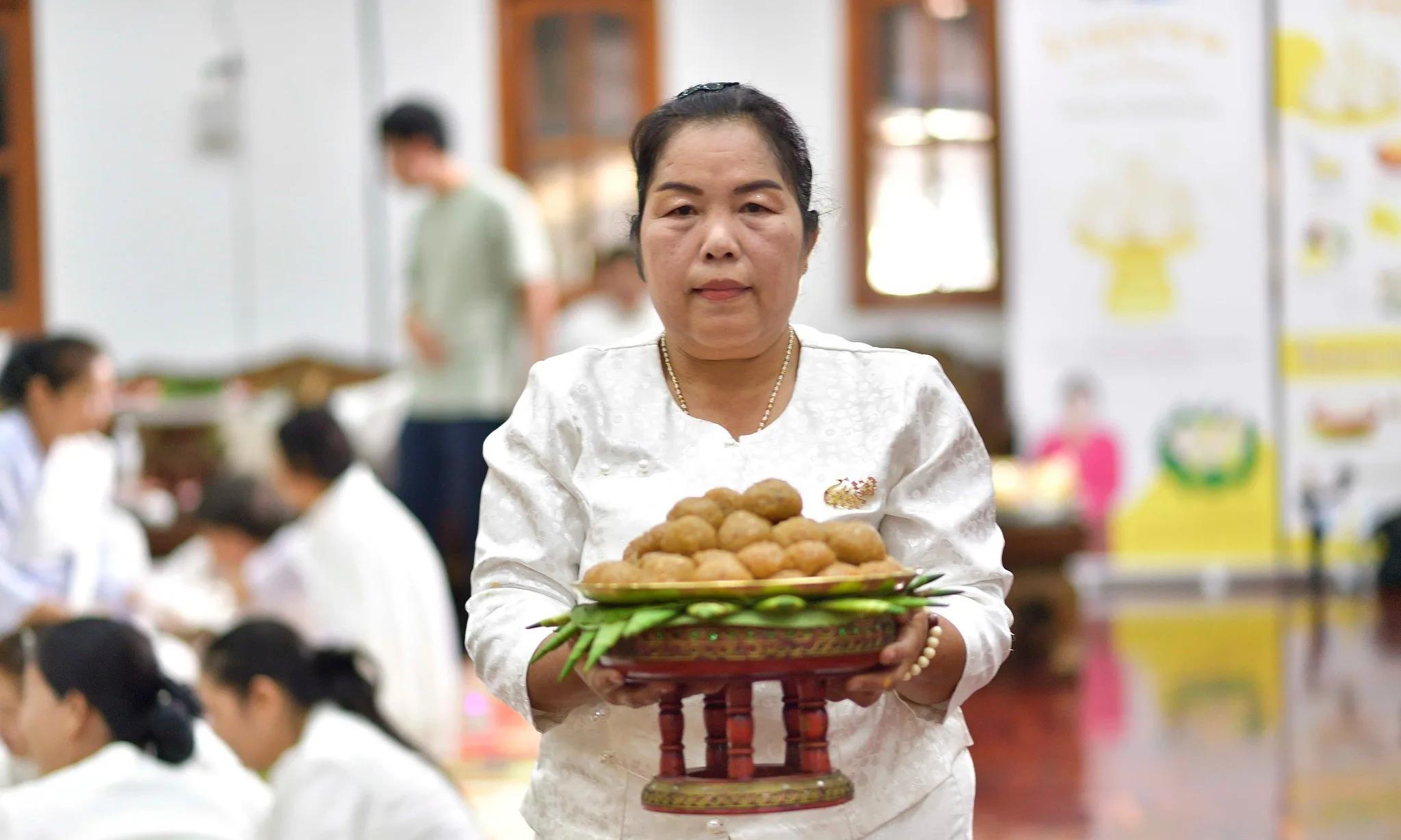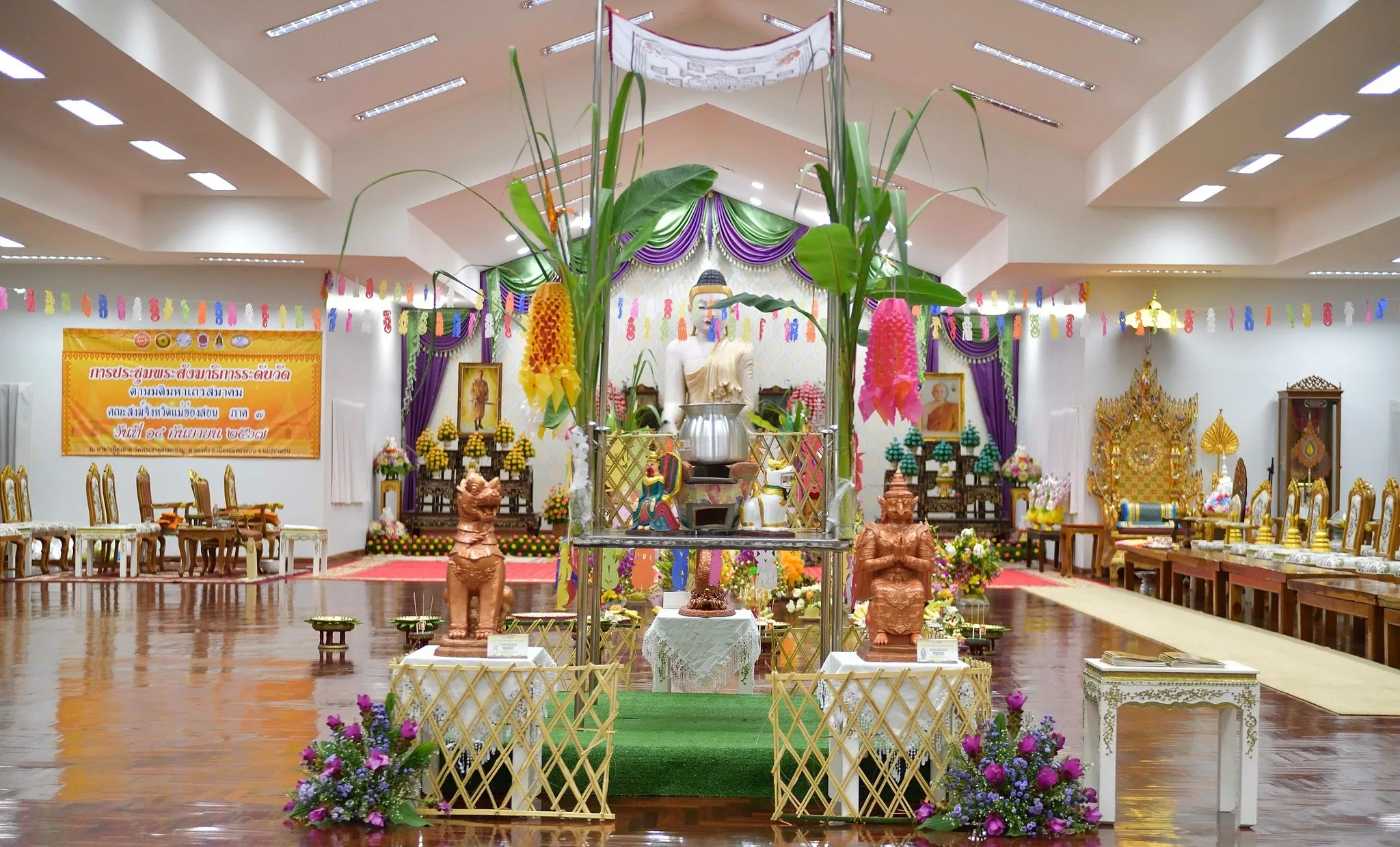 เวลา 06.00 น. พระสงฆ์สวดถวายพรพระ ถวายภัตตาหารเช้า แด่พระภิกษุสามเณร และเลี้ยงอาหารคณะศรัทธา
