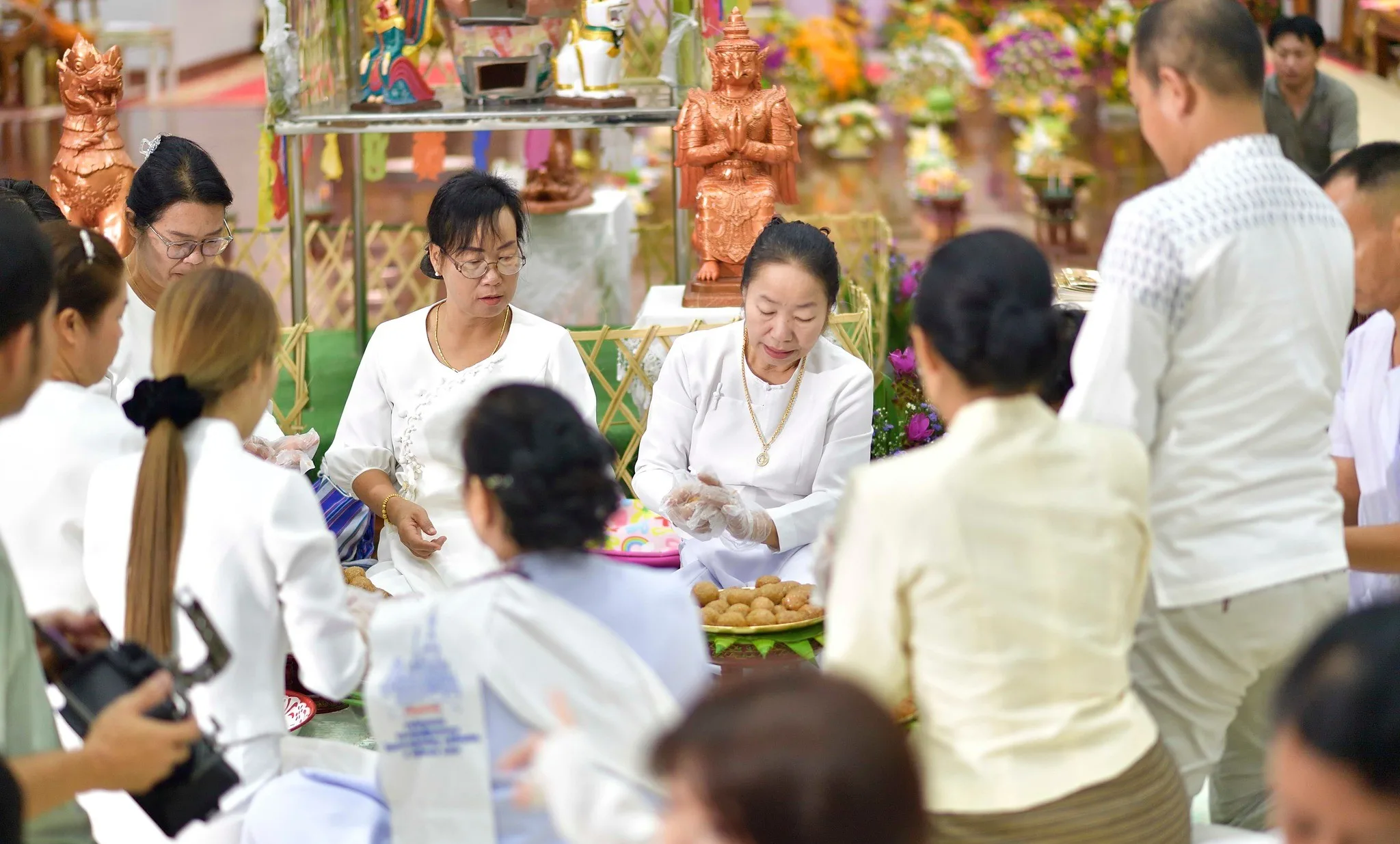เวลา 05.30 น.ผู้ปฏิบัติธรรมจากวัดต่าง ๆ และคณะศรัทธาพร้อมกัน ณ อาคารผู้สูงอายุ วัดพระธาตุดอยกองมู