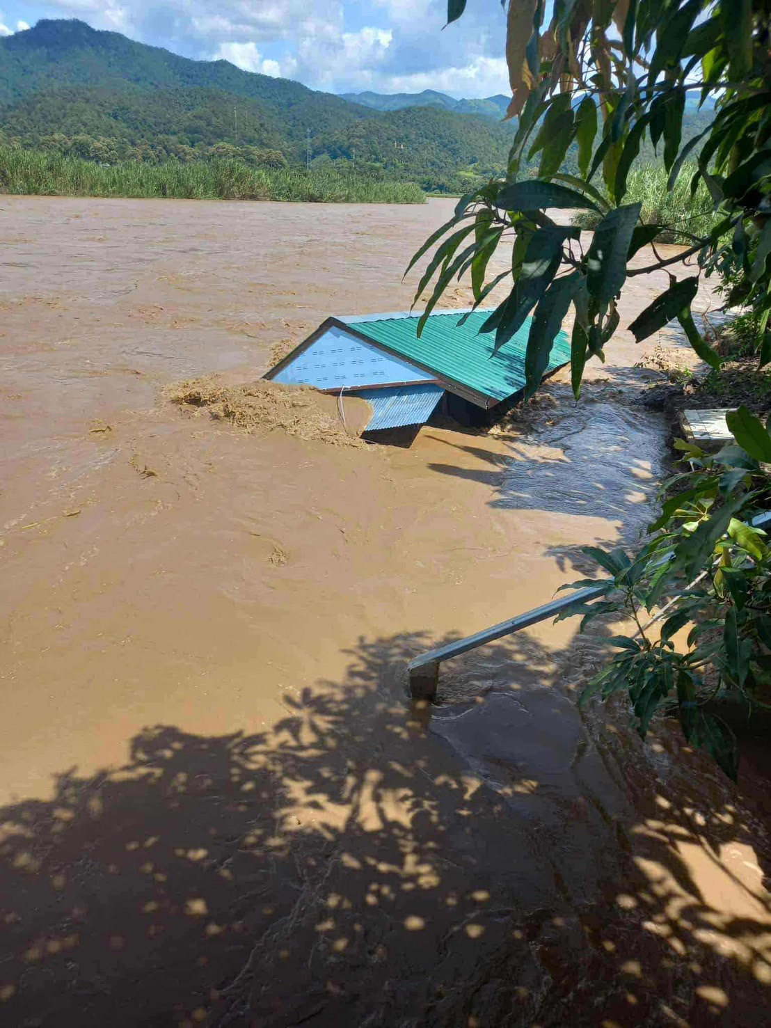 แม่สะเรียง-ดินทรุดบ้านพังลอยไปกับสายน้ำแม่ยวม ราษฎรบ้านห้วยสิงห์ได้รับผลกระทบจากน้ำกัดเซาะตลิ่งรีบขนย้ายสิ่งของไปเก็บไว้ในที่ปลอดภัย