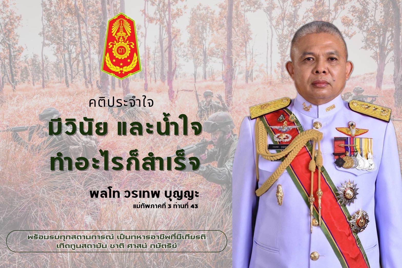 วันที่ 3 ตุลาคม 2568 พลโท วรเทพ บุญญะ แม่ทัพภาคที่ 3/ผู้บัญชาการศูนย์ปฏิบัติการกองทัพภาคที่ 3 และคณะ ได้เดินทางมาตรวจเยี่ยมการปฏิบัติงานของหน่วยทหารพรานที่ 36 พร้อมให้นโยบายแนวทางในการปฏิบัติงาน เน้นย้ำให้กำลังพลทุกนาย “มีวินัย และน้ำใจ ทำอะไรก็สำเร็จ” โดยมี พันเอก ต่อพงษ์ ชำนาญอาสา ผู้บังคับการกรมทหารพรานที่36 และ กำลังพลทหารพรานที่ 36 ให้การต้อนรับ ณ หน่วยเฉพาะกิจกรมททหารพรานที่ 36 ค่ายเทพสิงห์ ต.บ้านกาศ อ.แม่สะเรียง จ.แม่ฮ่องสอน