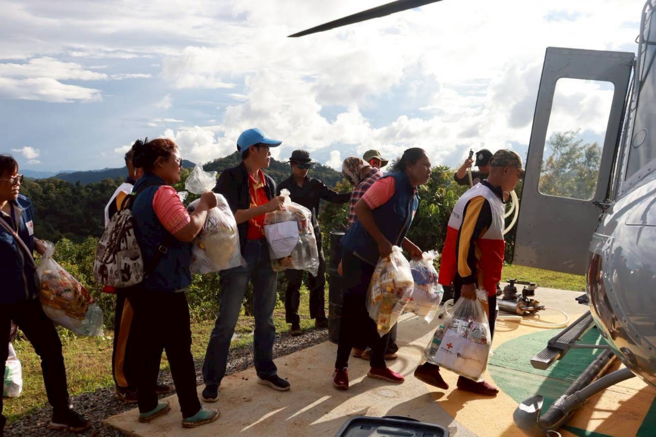 สิ่งของบริจาคช่วยเหลือทั้งหมดถูกลำเลียงออกจากที่ทำการกิ่งกาชาดอำเภอแม่สะเรียง โดยรถยนต์จำนวน 2 คัน ใช้เวลาเดินทางประมาณ 1 ชั่วโมง ไปยังจุดรับ–ส่งที่กำหนด ยังลาน ฮ.เพื่อทำการขนถ่ายบรรทุกขึ้น เฮลิคอปเตอร์ของกองบินตำรวจตระเวนชายแดน ภาค 3 ลำเลียงสิ่งของฯไปยังพื้นที่เป้าหมายทั้งสามหมู่บ้าน เพื่อส่งต่อถึงมือผู้ประสบภัยอย่างปลอดภัยและทั่วถึง ประกอบด้วย