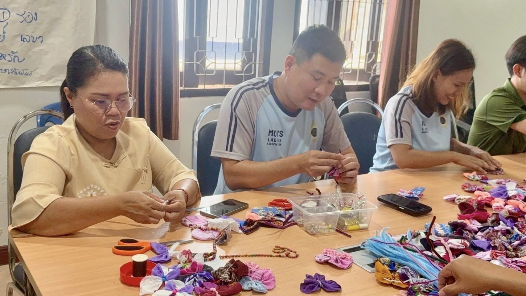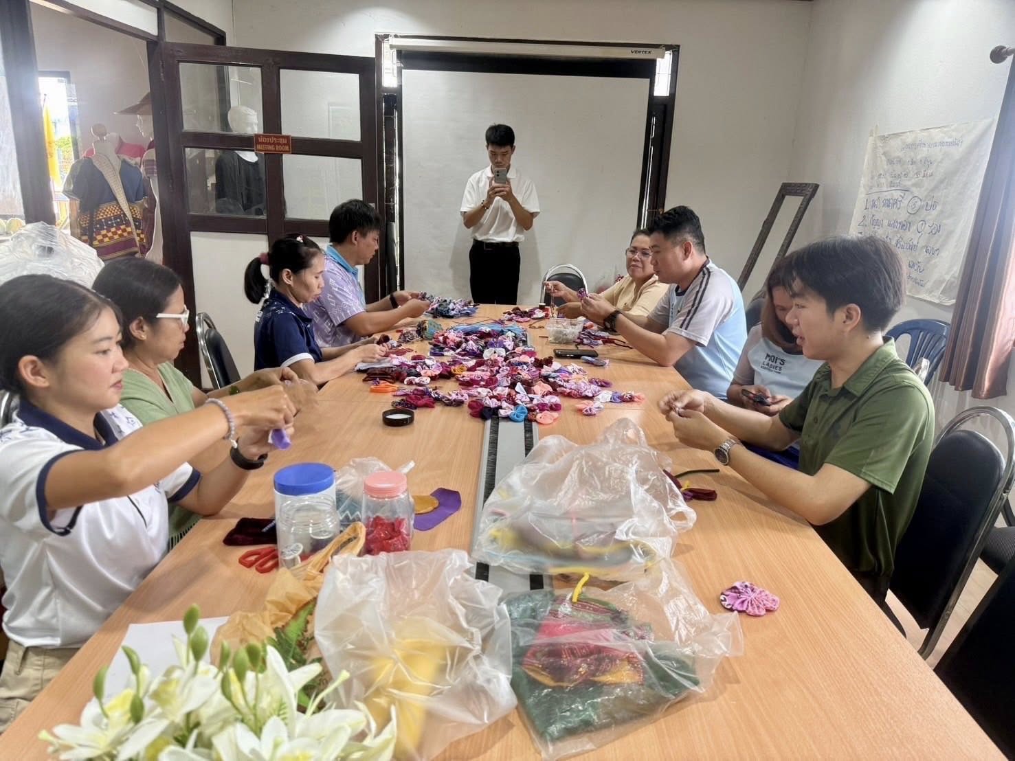 อำเภอแม่ลาน้อย ร่วมสนับสนุนการประดิษฐ์ผีเสื้อจากผ้าไทยประจำถิ่น เพื่อใช้ในการออกร้านงานกาชาดของสมาคมแม่บ้านมหาดไทย