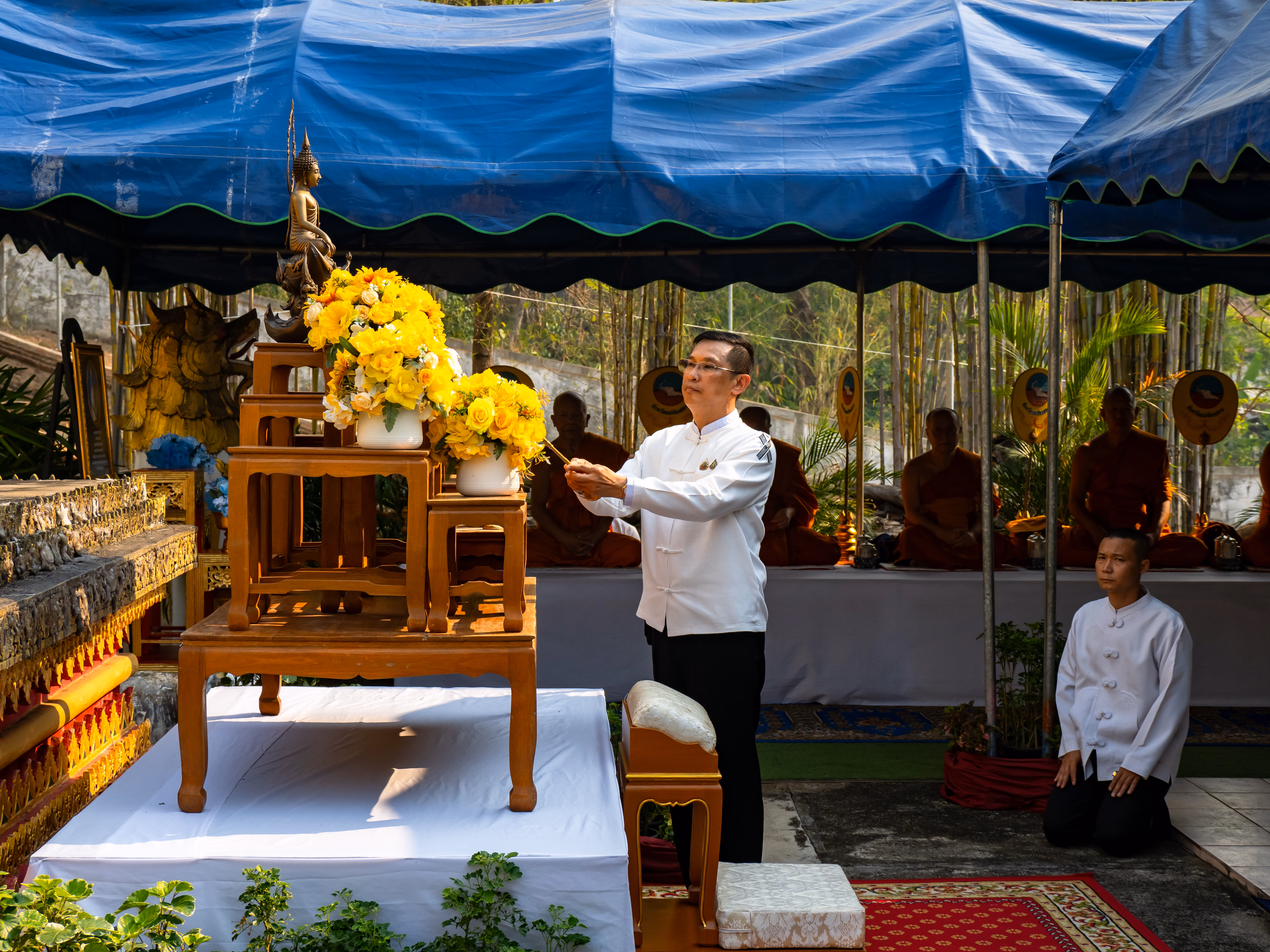 วันที่ 10 เม.ย. 2569 เวลา 08.30 น. ที่บริเวณลานสิงห์คู่วัดพระนอน ตำบลจองคำ อำเภอเมืองแม่ฮ่องสอน นายวิบูรณ์ แววบัณฑิต ผู้ว่าราชการจังหวัดแม่ฮ่องสอน เป็นประธานพิธีขอขมา (กั่นตอ) ขอพรสิ่งศักดิ์สิทธิ์ และพระเถระชั้นผู้ใหญ่ ของจังหวัดแม่ฮ่องสอน เนื่องในประเพณีสงกรานต์ ประจำปี 2569 โดยมี นางสุดารัตน์ แววบัณฑิต นายกเหล่ากาชาดจังหวัดแม่ฮ่องสอน นายนิวัฒน์ งามธุระ รองผู้ว่าราชการจังหวัดแม่ฮ่องสอน นายอุดม ศักดิ์ ขาวหนูนา รองผู้ว่าราชการจังหวัดแม่ฮ่องสอน หัวหน้าส่วนราชการ และประชาชนชาวแม่ฮ่องสอนร่วมพิธี โดยมีพิธีทักษิณานุปทาน แด่อดีตเจ้าเมืองแม่ฮ่องสอนทั้ง 4 องค์ ประกอบด้วย สถูปอัฐิพญาสิงหนาทราชาและเจ้านางเมี้ยะ และสถูปอัฐิพญาพิทักษ์สยามเขต และพญาพิศาลฮ่องสอนบุรี จากนั้นร่วมพิธีรดน้ำขอพรเจ้าคณะจังหวัดแม่ฮ่องสอน (มหานิกาย) รองเจ้าคณะจังหวัดแม่ฮ่องสอน เจ้าคณะอำเภอทุกอำเภอ เจ้าคณะอำเภอเมืองแม่ฮ่องสอน (ธรรมยุต) และพระเถระชั้นผู้ใหญ่