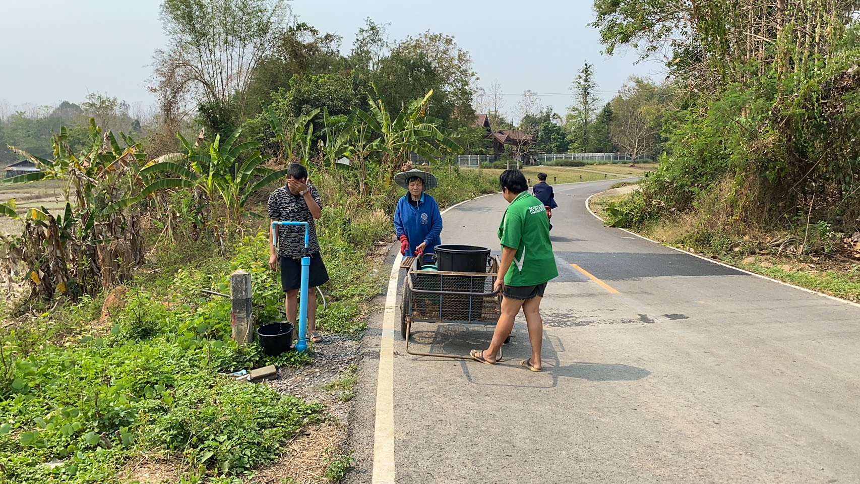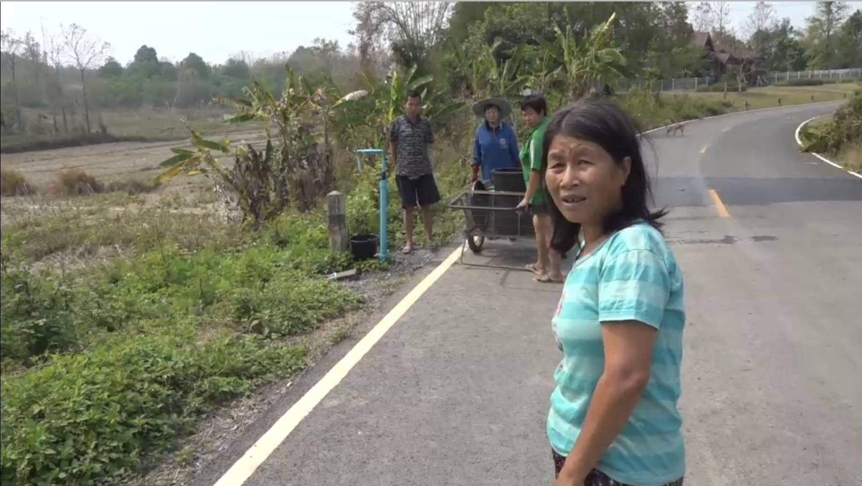 ส่วนบางหลังรอคอยรถน้ำจากทาง อบต.บ้านพี้ ที่จะคอยนำน้ำมาแจกจ่ายให้ชาวบ้านโดยตั้งถังรองน้ำไว้หน้าบ้าน แต่รถน้ำซึ่งเป็นรถดับเพลิงของทาง อบต.บ้านพี้ ซึ่งมีขนาดความจุน้ำ 4,000 ลิตร ก็ไม่เพียงพอต่อความต้องการของชาวบ้าน เนื่องจากต้องคอยนำน้ำไปแจกจ่ายอีกหลายหมู่บ้านที่ประสบปัญหาภัยแล้งเช่นเดียวกัน