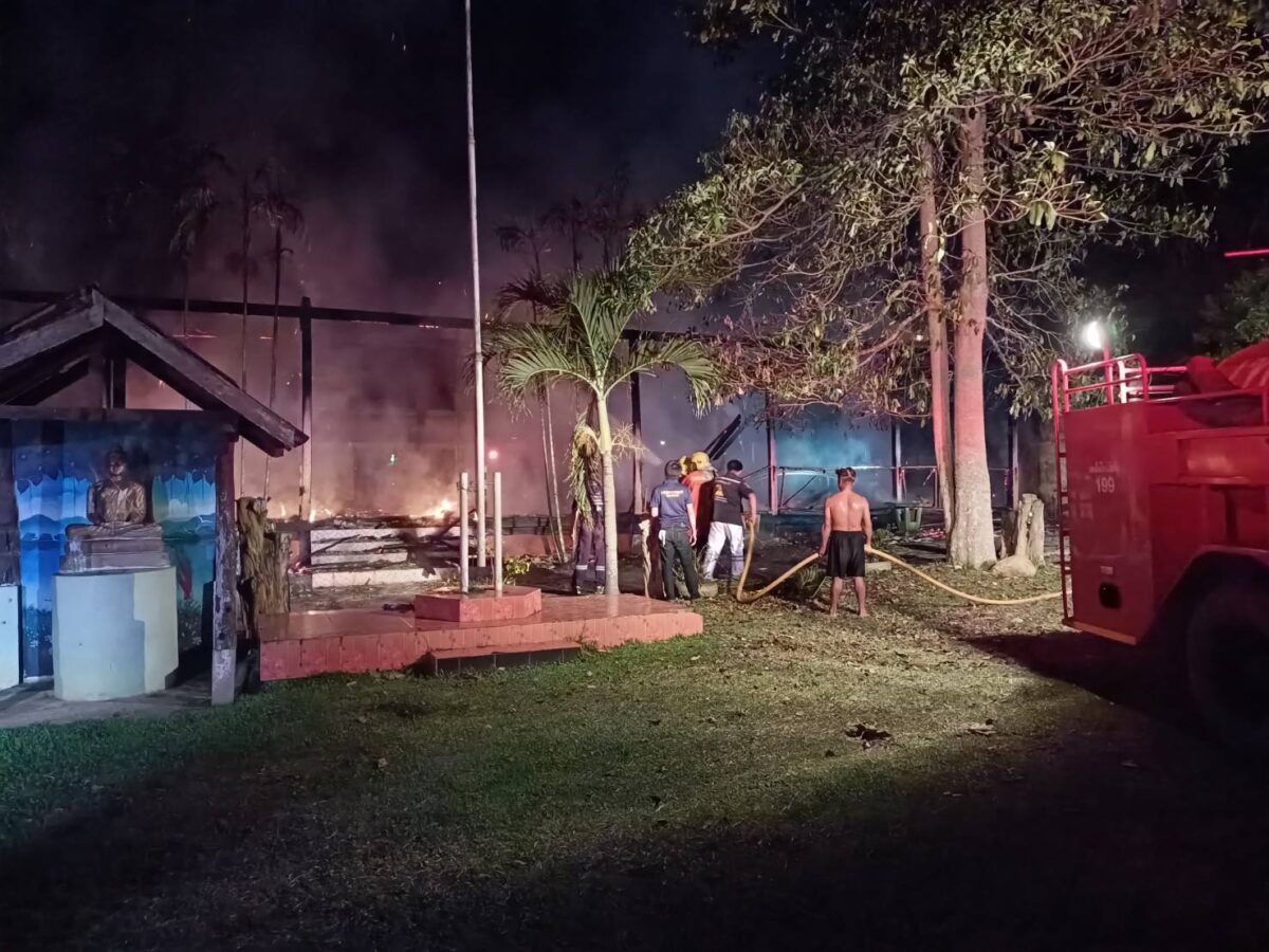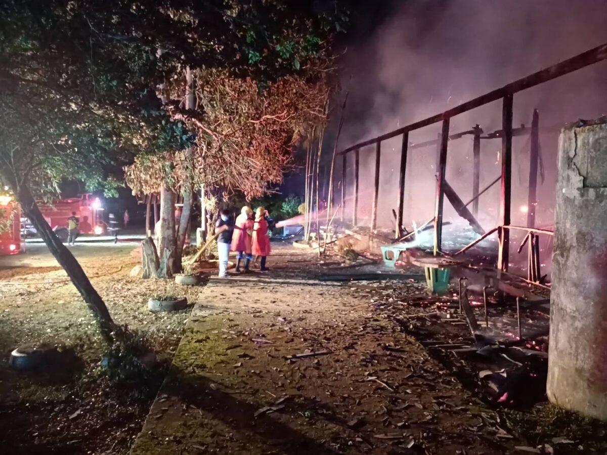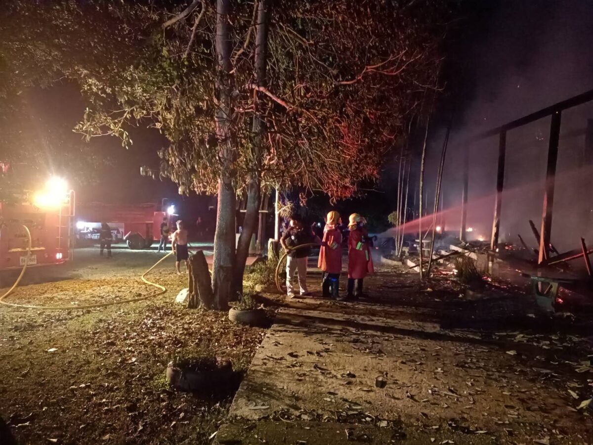 เพลิงไหม้อาคารเรียนชนเผ่าเป็นห้องแถวยาวหลังใหญ่ ได้รับความเสียหายหมดทั้งหลัง