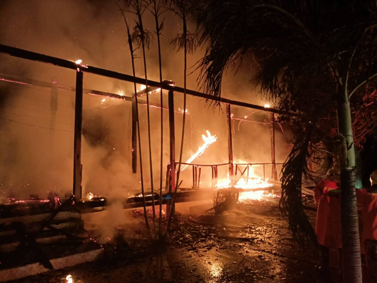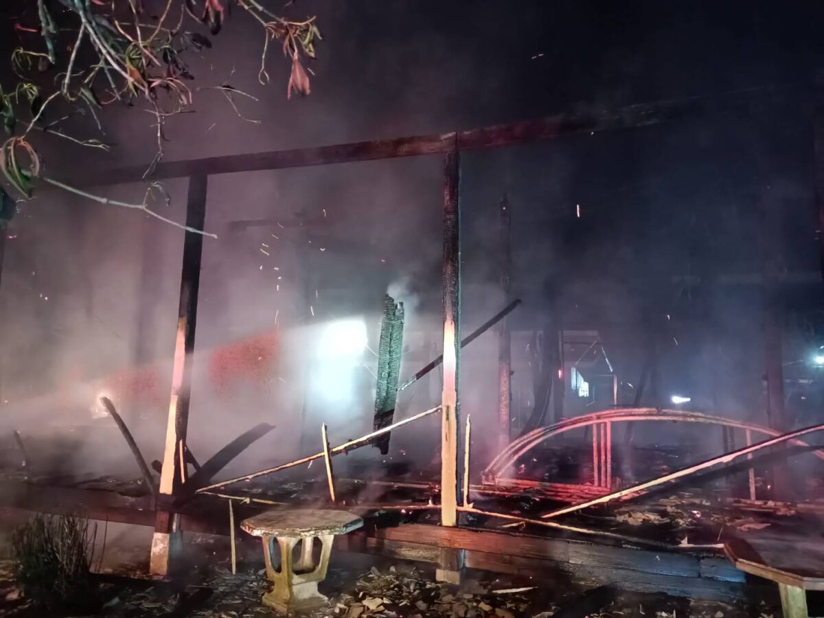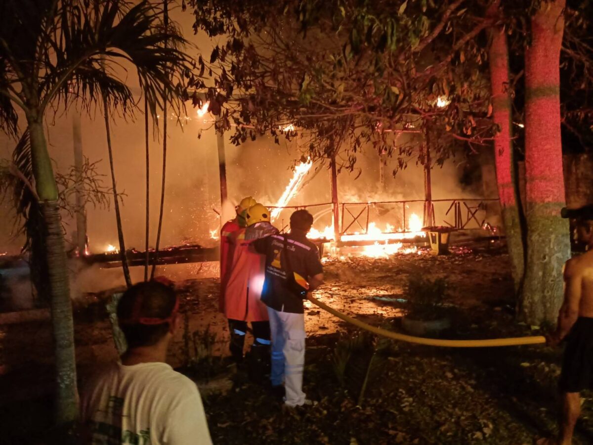 เพลิงไหม้อาคารเรียนชนเผ่าเป็นห้องแถวยาวหลังใหญ่ ได้รับความเสียหายหมดทั้งหลัง