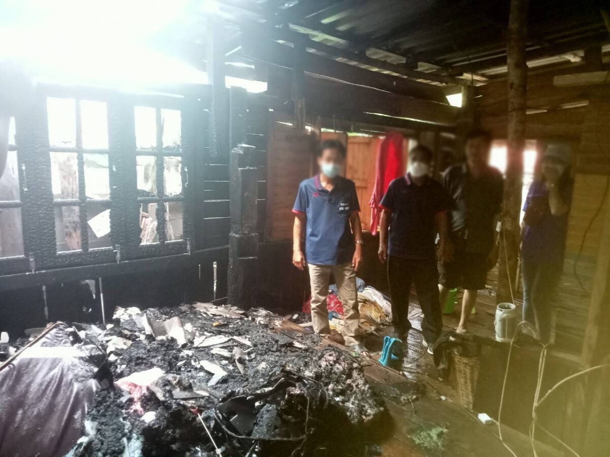 ไฟไหม้บ้านอดีตทหารพรานอาศัยอยู่กัน 2 คนพ่อ 50 ปีลูกชาย 7 ปีไม่อยู่ไฟไหม้บ้านได้รับความเสียหายเกือบทั้งหลัง