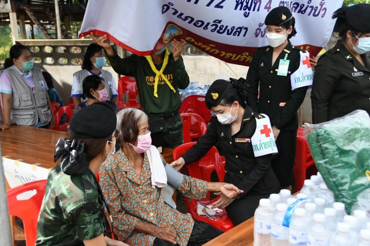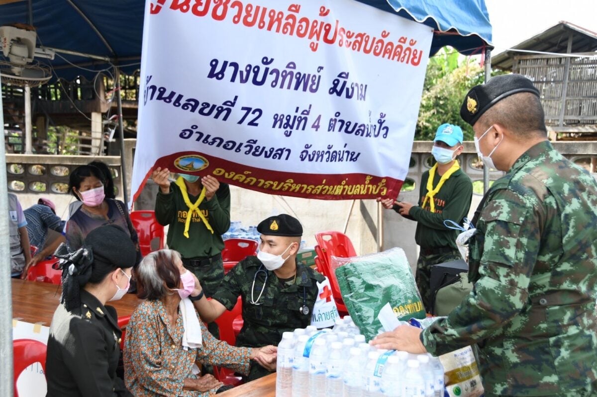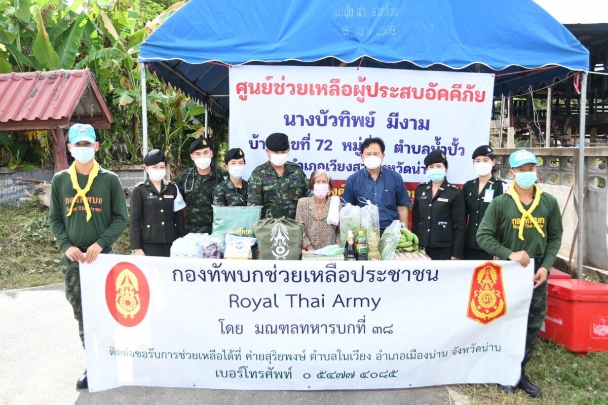 โดยมอบสิ่งของอุปโภคบริโภค ผักปลอดภัยจากโครงการทหารพันธุ์ดี น้ำดื่ม ไข่ไก่ บะหมี่สำเร็จรูป น้ำมันพืช ปลากระป๋อง เจลแอลกอฮอล์ล้างมือ หน้ากากอนามัยและผ้าห่ม พร้อมให้กำลังใจ ตรวจสุขภาพ ให้กับ นางบัวทิพย์ มีงาม อายุ 84 ปี หมู่ 4 ตำบลน้ำปั้ว อ.เวียงสา จ.น่าน ซึ่งบ้านถูกไฟไหม้เสียหายทั้งหลังเมื่อ 14 ก.ค.65 ที่ผ่านมา ผลการปฏิบัติเป็นไปด้วยความเรียบร้อย สร้างความซาบซึ้งใจให้กับผู้ประสบอัคคีภัยที่ได้รับสิ่งของและกำลังใจดังกล่าวเป็นอย่างยิ่ง ซึ่งเป็นไปตามนโยบายของกองทัพบก “ทหารเป็นที่พึ่งของประชาชนในทุกโอกาส” และเป็นการสร้างความภาคภูมิใจให้กับกองทัพบก