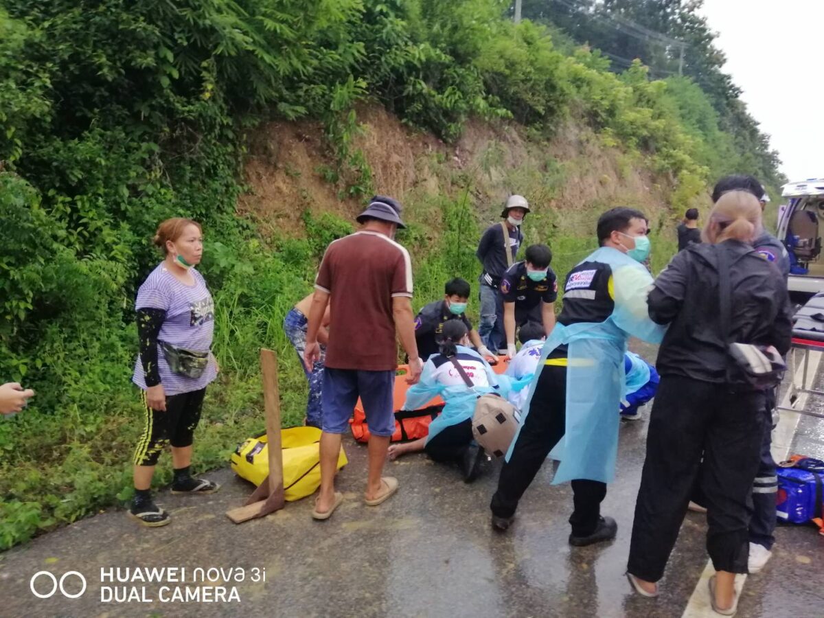 วัดห้วยส้มป่อย ตำบลผาสิงห์ อำเภอเมืองน่าน จังหวัดน่าน ขาเข้าเมืองมีผู้ได้รับบาดเจ็บหลายราย จึงรุดไปตรวจสอบในที่เกิดเหตุพบทีม รถกู้ชีพนครน่าน/รถกู้ชีพผาสิงห์/รถกู้ชีพนครน่านรวมใจ นำผู้ได้รับบาดเจ็บทั้งหมดมีผู้ได้รับบาดเจ็บ 3 ราย เด็กชาย 1 ราย หญิง 2 รายช่วยกันปฐมพยาบาลเบื้องต้นณ จุดเกิดเหตุก่อน ส่งโรงพยาบาลน่านจนท.ตร.ช้างเผือก/ชุดเหยี่ยวฟ้า/ขุนน่าน 7 อำนวยความสะดวกในที่เกิดเหตุ