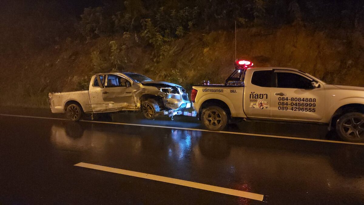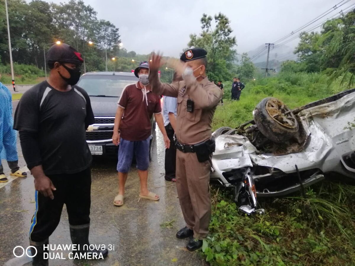 โดยที่เกิดเหตุเป็นทางโค้งขึ้นเขาประกอบกับฝนตกทำให้ถนนลื่น พบร่องรอยล้อรถเสียหลักแหกโค้งโดยไม่มีรอยเบรคแต่อย่างใด พุ่งชนไหล่ทางจนพลิกโดยมีแม่ เป็นคนขับและมีลูกชาย นั่งอยู่ด้านหน้ารถกระเด็นออกรถอยู่กลางถนน และมีผู้หญิงอีก 1 คนติดอยู่ในรถได้รับบาดเจ็บสาหัส ส่วนสาเหตุ อยู่ระหว่างเจ้าหน้าที่ตำรวจดำเนินการสอบสวน เบื้องต้นคาดว่าประมาทขับรถเร็ว, ฝนตกหนักถนนลื่น
