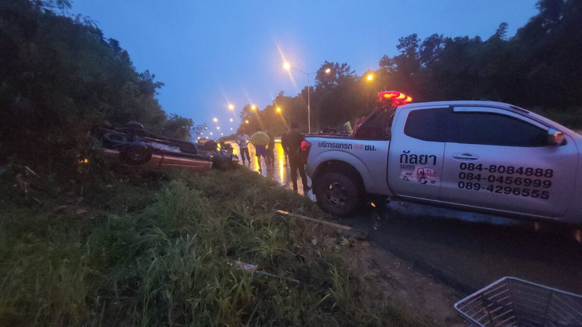 ลูกสาวขับรถผ่าสายฝนเพื่อไปรับแม่ แหกโค้งเทกระจาดกระเด็นออกนอกรถสาหัส 2