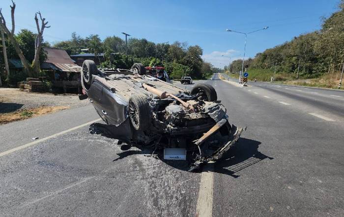 ให้การช่วยเหลือผู้ได้รับบาดเจ็บอยู่ในรถเก๋ง ยี่ห้อโตโยต้ายาริส สีดำ ทะเบียน ขษ xxxx นครราชสีมา เสียหลักชนเสาไฟฟ้าข้างทางหัก 1 ต้น สภาพรถหงายล้อชี้ฟ้า สภาพหน้ารถเก๋งพังยับ เนื่องจากชนเสาไฟฟ้า คนขับได้รับบาดเจ็บเล็กน้อยโชคดี ที่ถุงนิรภัยแตก จึงได้บันทึกที่เกิดเหตุไว้เป็นหลักฐาน ส่วนรถคันที่เกิดอุบัติเหตุคนขับได้แจ้งบริษัทประกันภัย ได้มาดำเนินการชดใช้ค่าเสียหายต่อไป