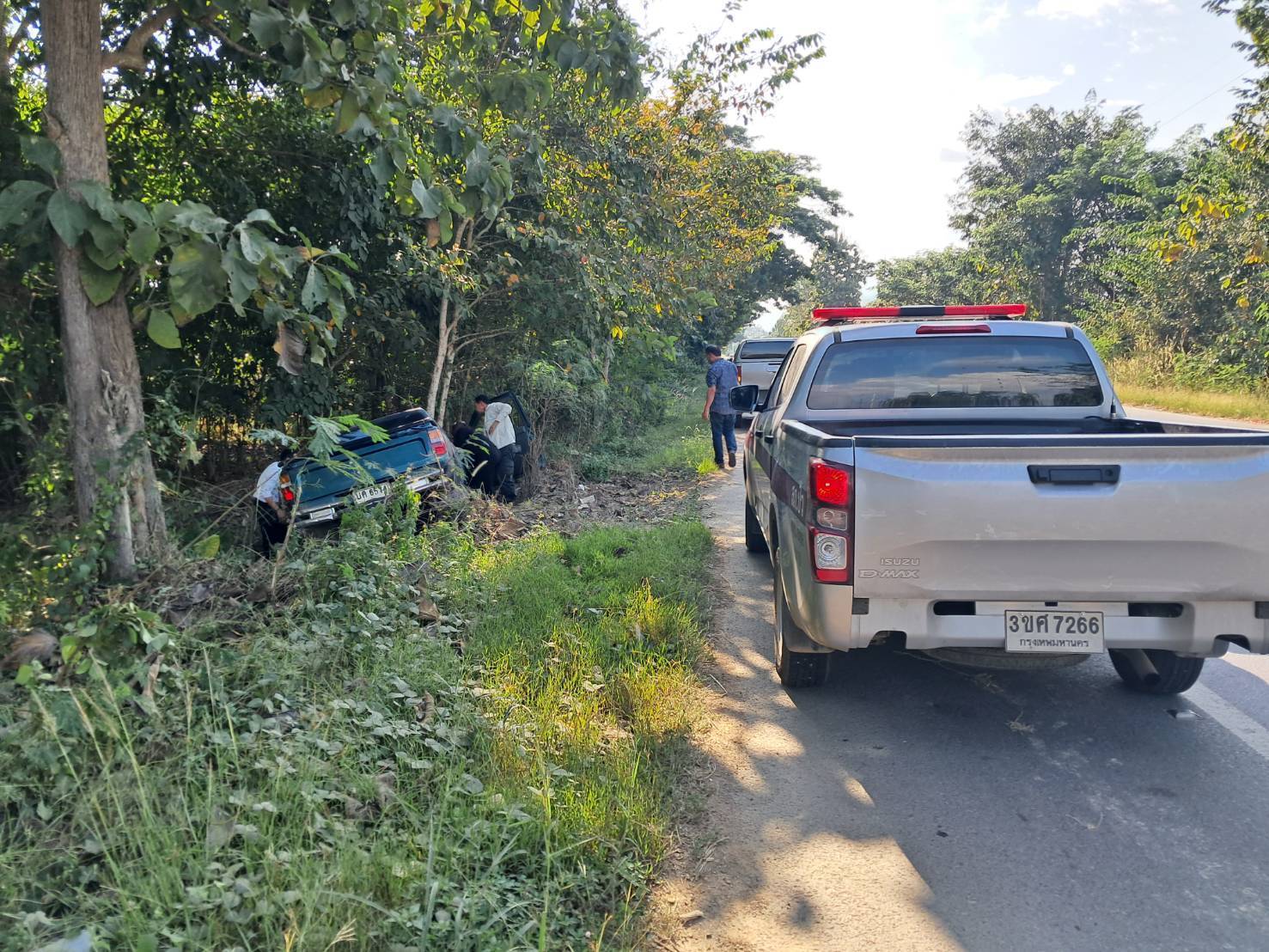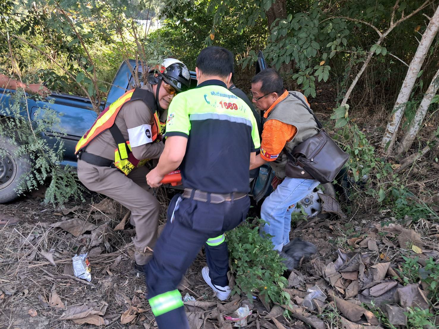 วันที่ 14 พฤศจิกายน 2567 เวลา 14.40 น. ร.ต.อ.สมบัติ เพาะจะโป๊ะ พงส สภ.ปัว จ.น่าน ได้รับแจ้งจากศูนย์วิทยุนคร 191 ตำรวจภูธรจังหวัดน่าน แจ้งว่า มีอุบัติเหตุรถยนต์เสียหลักพุ่งชนต้นไม้ ที่บริเวณถนนทุ่งช้าง – น่าน บริเวณบ้านขอน ตำบลปัว อำเภอปัว จังหวัดน่าน เลยวิทยาลัยเทคนิคปัว มาประมาณ 1 กม.ฝั่งขาล่องจากปัว มาอำเภอเมืองน่าน มีผู้ติดอยู่ภายในรถยนต์ จึงรายงานให้ พ.ต.อ.บุญส่ง นิกรเถื่อน ผกก.สภ.ปัว ทราบ รุดไปตรวจสอบในที่เกิดเหตุพบทีมงาน จนท.กู้ชีพ กู้ภัยในพื้นที่ รถพยาบาลสมเด็จยุพราชปัว กำลังให้ความช่วยเหลือผู้ติดอยู่ภายในรถยนต์