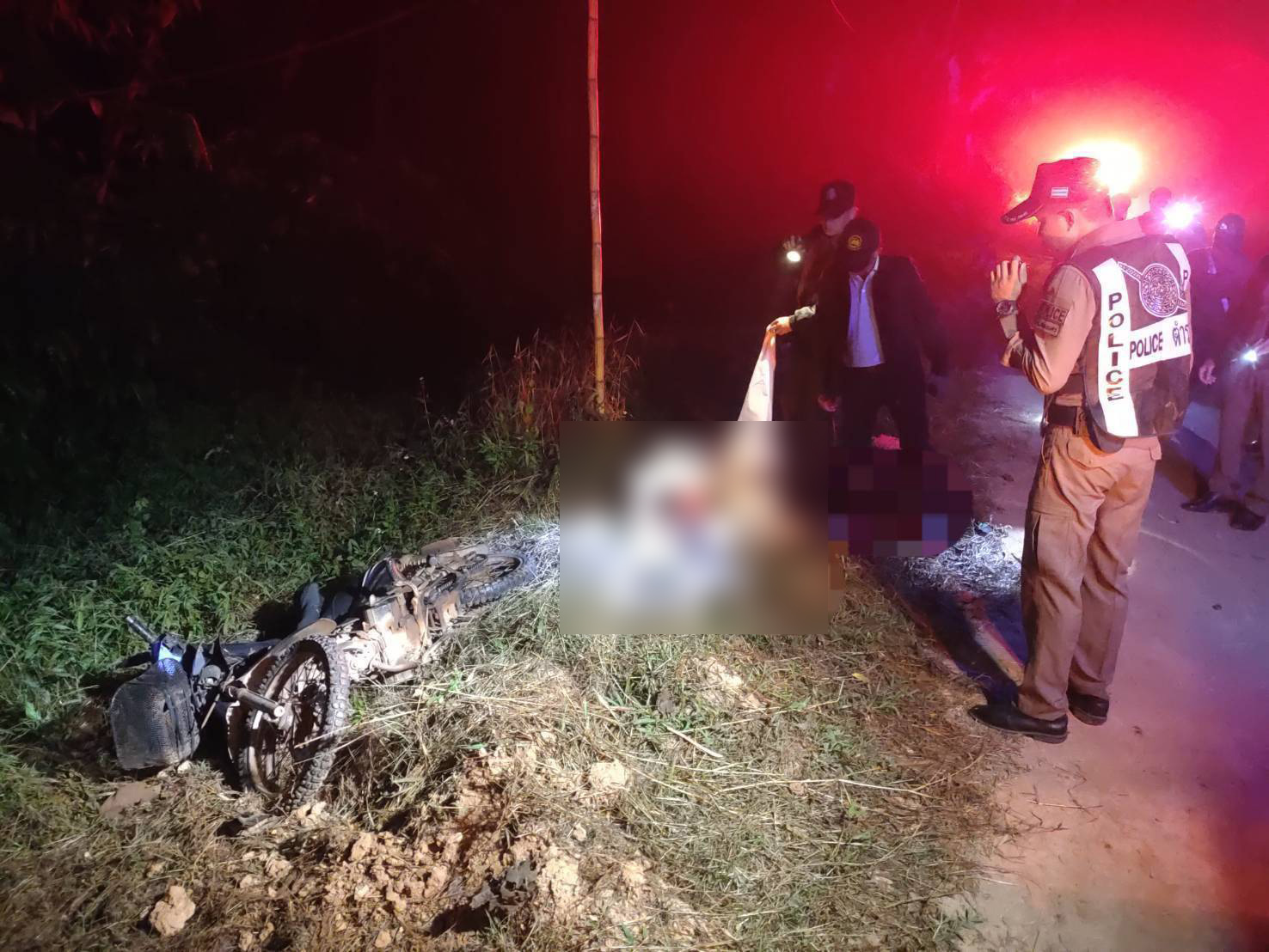 เมื่อวันที่ 9 ธันวาคม 2567 เวลา 04.24 น. ร.ต.อ.พงศกร สรัสชนา พงส.สภ.สองแคว จ.น่าน ได้รับแจ้งจากศูนย์วิทยุนครน่าน 191 ตำรวจภูธรจังหวัดน่าน ว่ามี เหตุเหตุรถจักรยานยนต์แฉลบล้มเองและเสียชีวิตในที่เกิดเหตู 1 ราย ที่บริเวณริมถนนก่อนถึง 4 แยกห้วยเลาถนนสายสองแคว-บ้านใหม่ชายแดน เขตบ้านน้ำปาน ม.3 ต.ชนแดน อ.สองแคว จ.น่าน จึงรายงานให้ พ.ต.ท.ประจบ ฝั้นกา รรท.ผกก.สภ.สองแคว พร้อมด้วยเจ้าหน้าที่กู้ภัย อปพรในพื้นที่และ แพทย์นิติเวชโรงพยาบาลสองแคว ร่วมกันตรวจชันสูตรพลิกศพ นายทักษ์ (สงวนนามสกุล) อายุ 50 ปี ม.7 ต.ชนแดน อ.สองแคว จ.น่าน ซึ่งเป็นคนขับขี่รถจักรยานยนต์ ไม่ทราบยี่ห้อและติดป้ายทะเบียน สภาพเก่า เสียชีวิตในที่เกิดเหตุ ถึงได้ร่วม กับเจ้าหน้าที่กู้ภัย อปพรในพื้นที่และ แพทย์นิติเวชโรงพยาบาลสองแคว ร่วมกันตรวจชันสูตรพลิกศพ จึงได้บันทึกภาพทำแผนที่เกิดเหตุไว้เป็นหลักฐาน