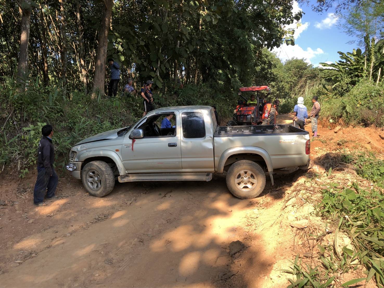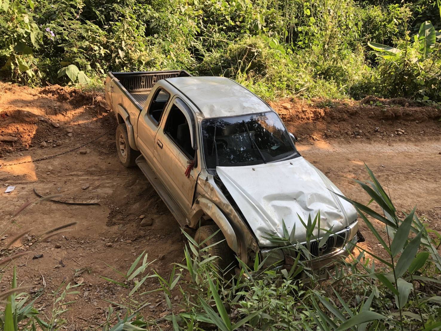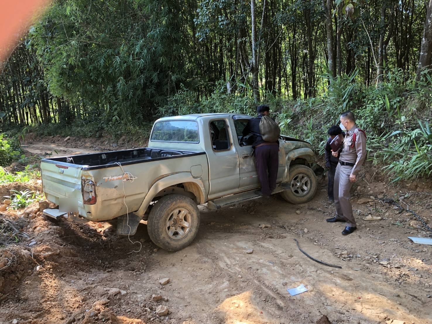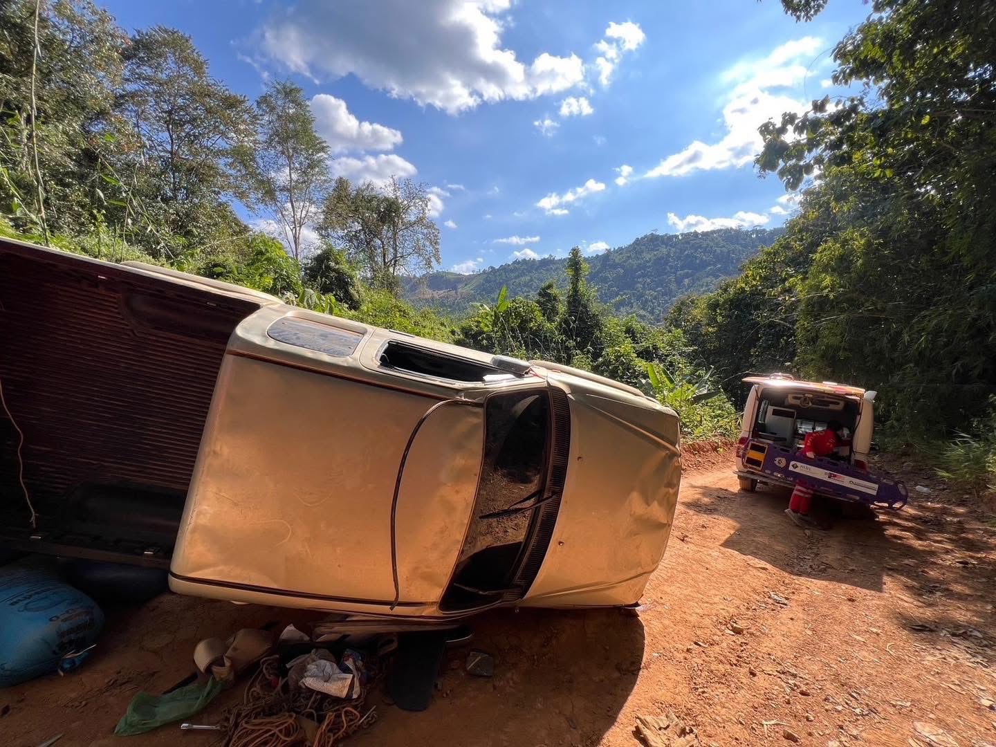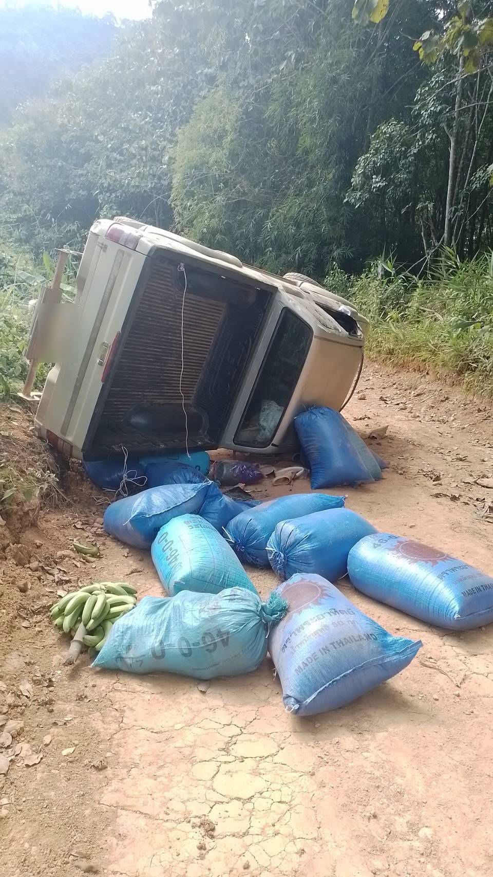 สอบถามเบื้องต้นทราบว่า นายกรฯ ขับรถยนต์ คันดังกล่าวบรรทุกกระสอบข้าวเปลือกมาตามถนนที่กิดเหตุแต่ระหว่างทาง เป็นถนนลูกรังตรงเขาลาดชัน และรถยนต์เกิดขัดข้อง ระบบเบรดมีปัญหาจึงทำให้รถยนต์เสียหลักพลิกคว่ำโดยมีผู้โดยสารมาด้วย และรถยนต์เสียหลักพลิกคว่ำ เป็นเหตุให้นายกร , นางภา , นางสาว สิรา และเด็กชาย ปกรณ์ ได้รับบาดเจ็บ และ รถยนต์ได้รับความเสียหาย ดังกล่าว ซึ่งทางญาติซึ่งทางญาติได้นำ รถไถในหมู่บ้านมาช่วยดึงชักลาก นำไปเก็บรักษาที่บ้าน และจะดำเนินการในส่วนที่เกี่ยวข้องต่อไป