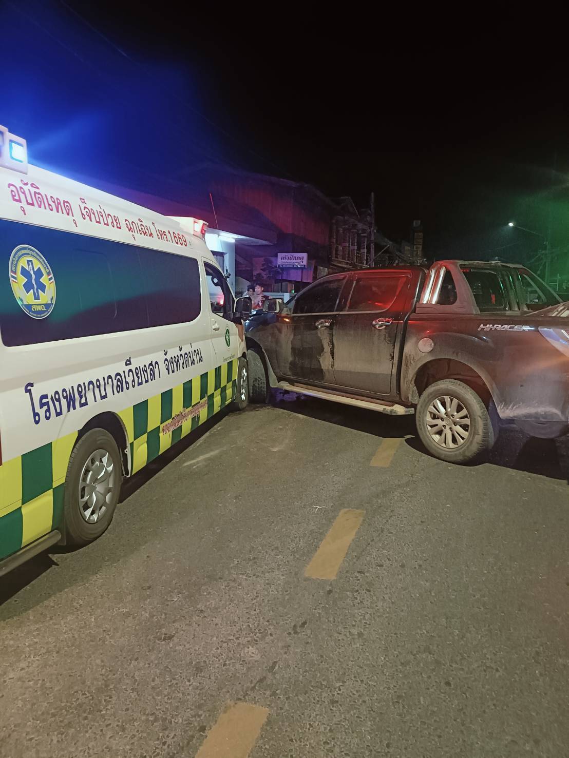 ด้านคนขับรถพยาบาล เล่าให้ฟังว่า ได้ขับรถนำผู้ป่วยจากโรงพยาบาลเวียงสา เพื่อส่งรักษาที่โรงพยาบาลน่าน โดยมีเจ้าหน้าที่พยาบาลนั่งมาด้วยกับคนไข้ มาถึงจุดเกิดเหตุเป็นทางร่วมทางแยก มีไฟเขียวไฟแดง ส่วนของรถพยาบาลเป็นสัญญาณไฟเขียว และมีการเปิดไฟสัญญาณไฟวับวาบ และเสียงไซเรน ขับมาด้วยความเร็ว 70-80 ขับข้ามจะพ้นแยกแล้ว จู่ๆ รถกระบะคันดังกล่าวก็เลี้ยวตัดหน้าเบรคไม่ทันจึงชนกันดังกล่าว
