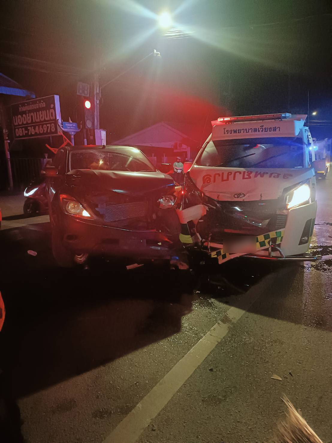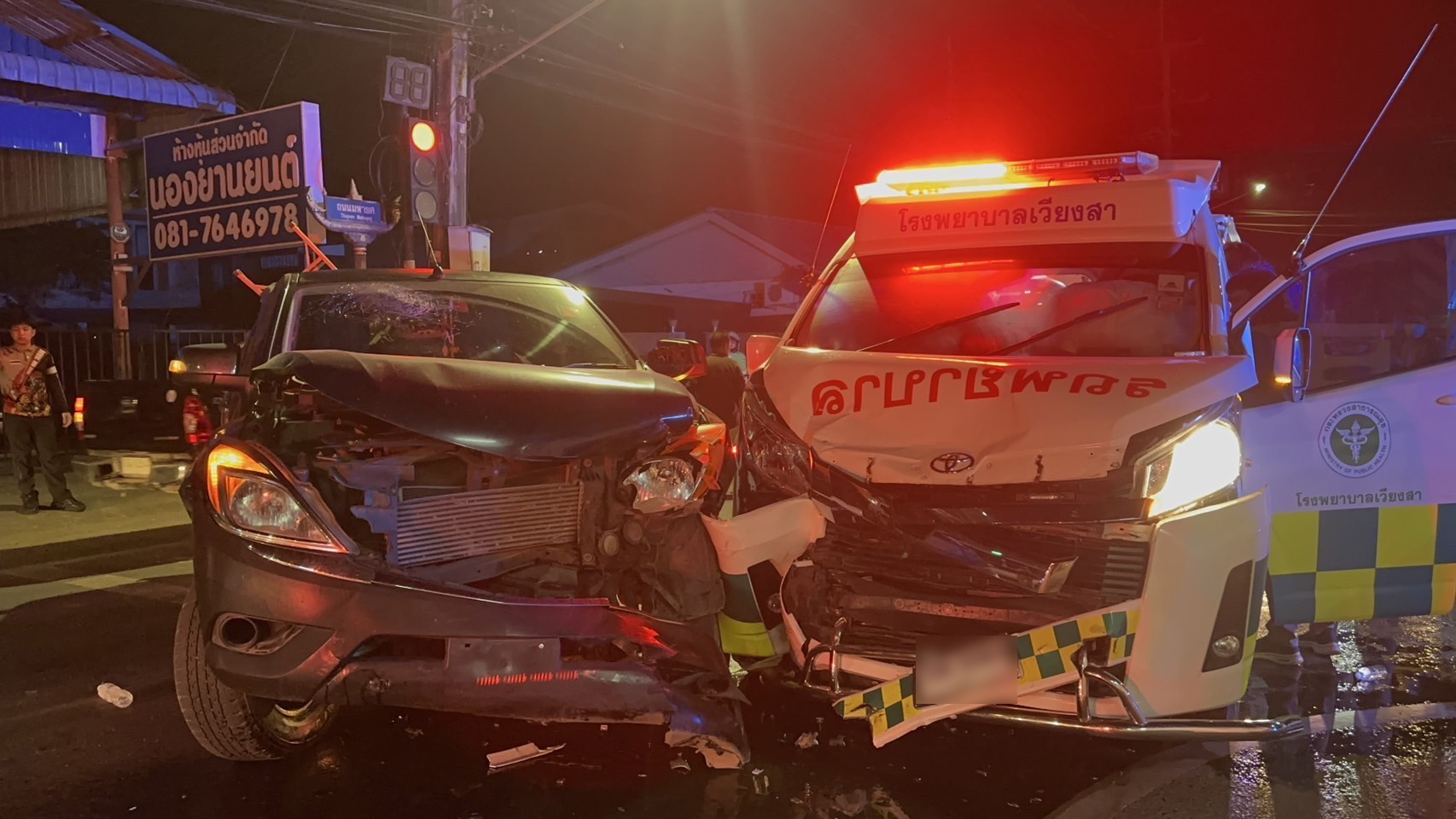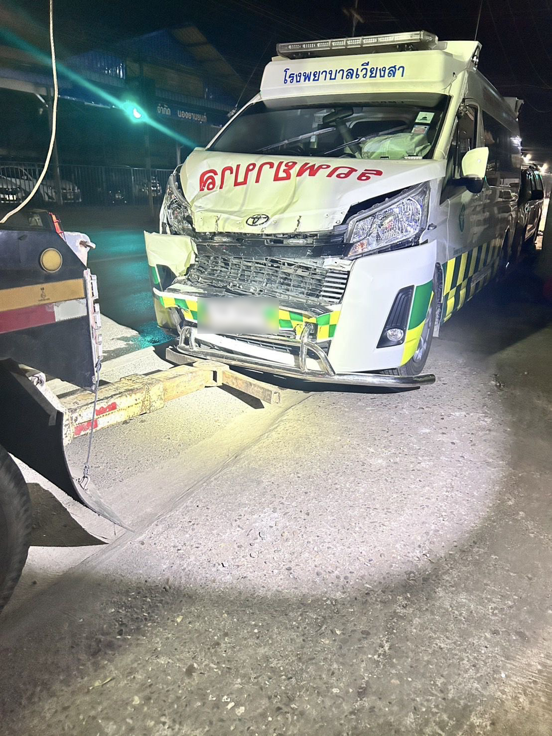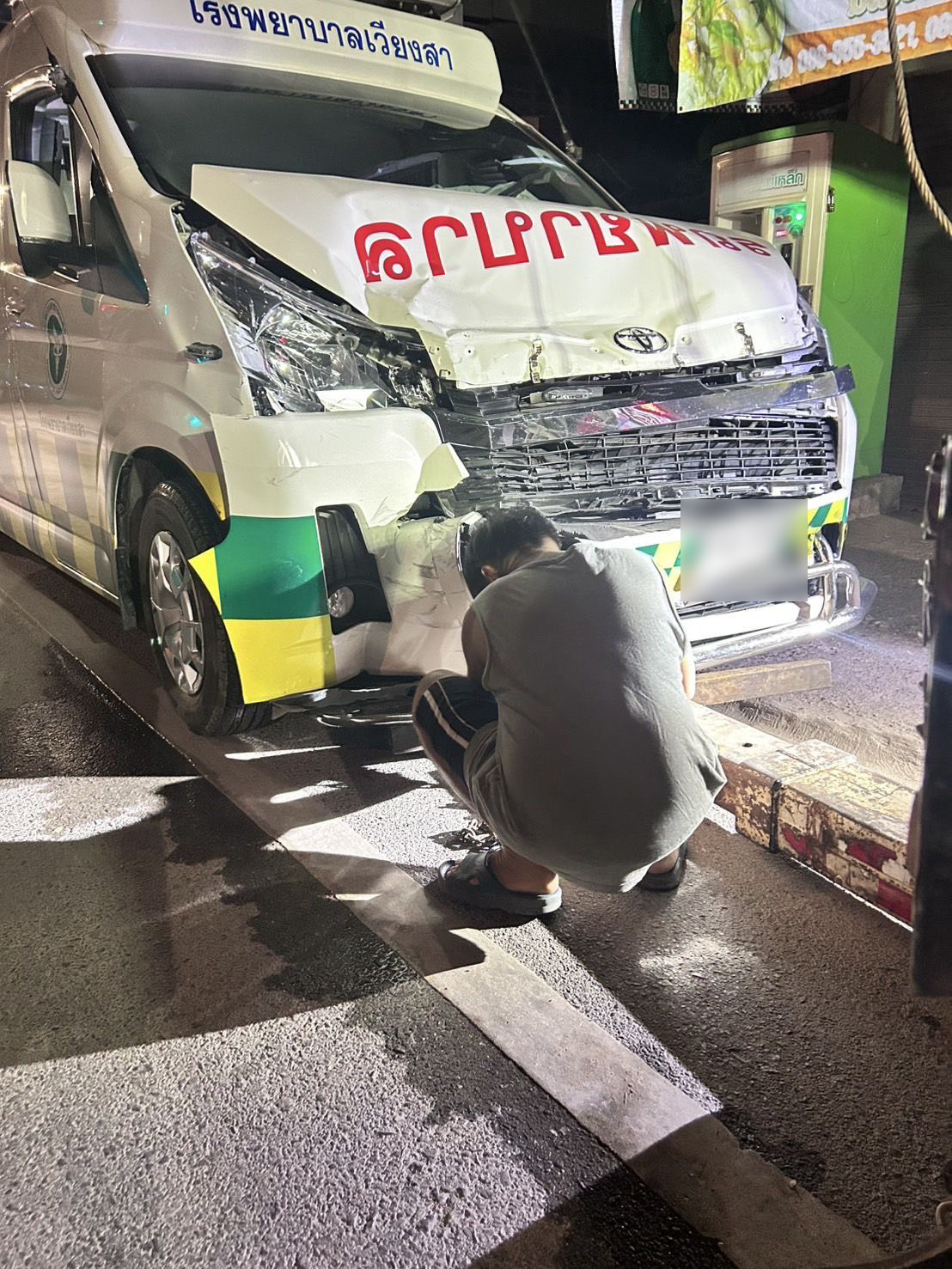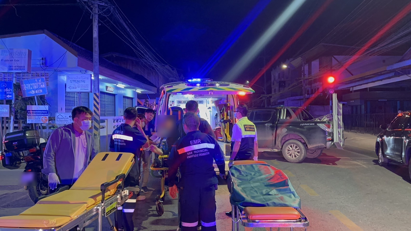เมื่อวันที่ 18 ธันวาคม 2567 เวลา 21.40 น. ศูนย์วิทยุนครน่าน 191 ตำรวจภูธรจังหวัดน่าน รับแจ้งอุบัติเหตุรถกระบะชนรถตู้ มีผู้ได้รับบาดเจ็บ บริเวณ 3 แยกสนามกีฬาองค์การบริหารส่วนจังหวัดน่าน ถนนมหายศ ตำบลในเวียง อำเภอเมืองน่าน จังหวัดน่าน จึงแจ้งให้เจ้าหน้าที่ตำรวจ สถานีตำรวจภูธรเมืองน่าน เข้าตรวจสอบที่เกิดเหตุพบตู้พยาบาลขั้นสูง โรงพยาบาลเวียงสา ยี่ห้อโตโยต้า ทะเบียน น่าน ถูกชนเข้าที่บริเวณด้านหน้าฝั่งคนขับ ใกล้กัน พบรถคู่กรณีเป็นรถกระบะสีดำ 4 ประตู ยี่ห้อมาสด้า ทะเบียน น่าน จอดขวางเส้นทางการจราจร เบื้องต้นมีผู้ได้รับบาดเจ็บ 1 ราย เป็นเจ้าหน้าที่พยาบาล มีบาดแผลฉีกขาดที่ขา ถูกนำส่งรักษาตัวที่โรงพยาบาลน่านไปก่อนหน้าแล้ว ส่วนด้านในรถพยาบาลพบผู้ป่วย 1 ราย ที่ถูกส่งต่อมากับรถพยาบาลเวียงสา เพื่อต่อมารักษาตัวที่โรงพยาบาลน่าน เนื่องจากเกินความสามารถของโรงพยาบาลเวียงสา