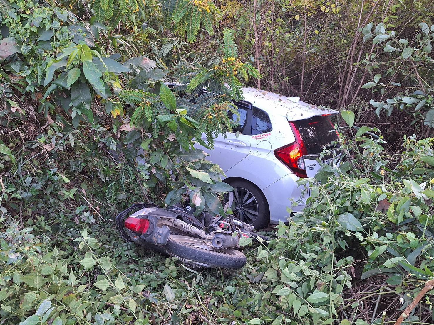 พบรถยนต์เก๋ง ยี่ห้อ ฮอนด้า แจ๊ส สีขาว ทะเบียนน่าน จอดอยู่บริเวณข้างถนนได้รับความเสียหาย โดยมี น.ส.พิมพ์ (นามสมมุติสงวนนามสกุล ) อายุ 30 ปี ชาว ต.ในเวียง อ.เมืองน่าน เป็นผู้ขับขี่ได้รับบาดเจ็บเจ้าหน้าที่กู้ภัย เร่งนำตัวส่ง รพ.เชียงกลาง และพบรถจักรยานยนต์ยี่ห้อ ฮอนด้า สีแดง-ดำ ทะเบียนน่าน ล้มอยู่ข้างทาง สภาพได้รับความเสียหายเกือบทั้งคัน และมีผู้เสียชีวิตในที่เกิดเหตุ คือ ด.ช.ธน (นามสมมุติสงวนนามสกุล )อายุ 14 ปี อยู่บ้าน ม.1 ต.เชียงกลาง อ.เชียงกลาง จ.น่าน และมีผู้บาดเจ็บอีก 1 ราย คือ ด.ช.ธีระ(นามสมมุติสงวนนามสกุล ) อายุ 13 ปี อยู่บ้าน ม.5 ต.พญาแก้ว อ.เชียงกลาง จ.น่าน จนท.กู้ภัย เร่งนำตัวส่ง รพ.เชียงกลาง โดยเร่งด่วนเพื่อทำรักษาตัว