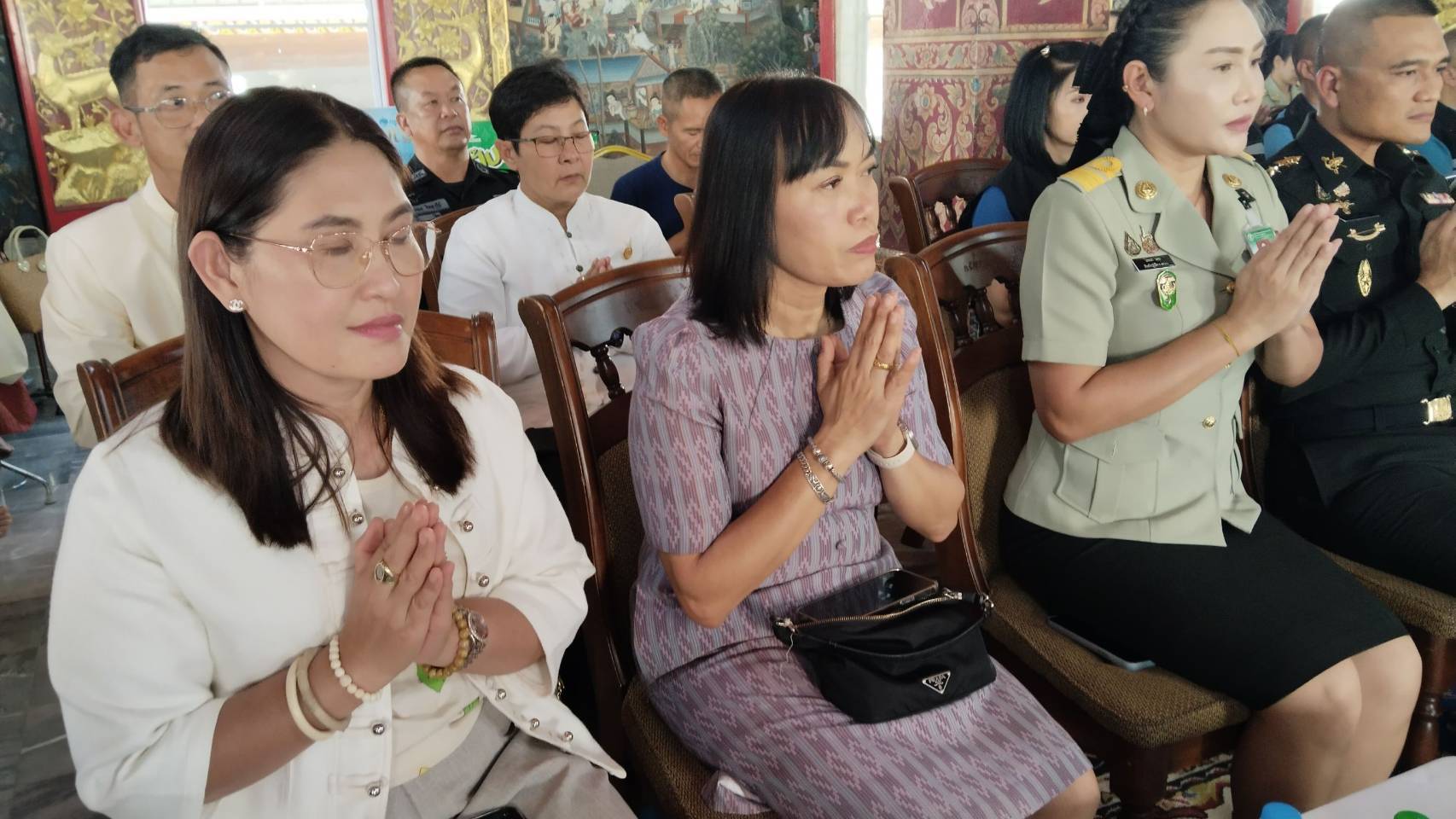 ภายในพิธี ประธานในพิธีได้จุดธูปเทียนบูชาพระรัตนตรัย และถวายพานดอกไม้ธูปเทียนแด่ประธานสงฆ์ จากนั้นศาสนพิธีกรนำกล่าวคำบูชาพระรัตนตรัย พระสงฆ์ให้ศีล และกล่าวสัมโมหนียกถาอนุโมทนา