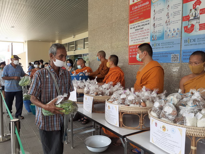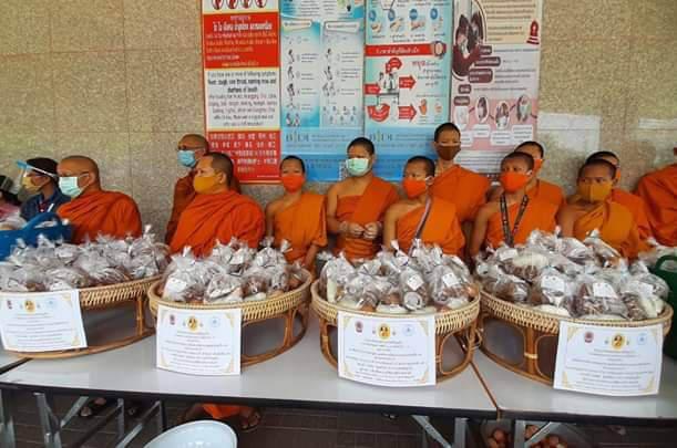 โดยให้แม่ครัวของโรงเรียนพระปริยัติธรรม ธีรราชมหามุนี วัดศรีบุญเรือง จัดทำอาหารสำเร็จรูปพร้อมทานได้ทันที มี ไก่ทอด ข้าวเหนียว น้ำพริก ไข่ต้ม น้ำดื่ม จำนวน 1,000 ชุด และ ผักจากโครงการหลวงป่าแป๋ ร่วมแจกจ่ายแบ่งปัน ให้กับประชาชน ในพื้นที่ อ.แม่สะเรียง ซึ่งได้รับความเดือดร้อนจากพิษเศรษฐกิจ และการเกิดโรคระบาดโควิด-19 โดยมีจิตอาสาโรงพยาบาลช่วยคัดกรอง มีการตรวจวัดอุณหภูมิ ล้างมือด้วยเจล การรับสิ่งของเว้นระยะห่างตามที่กำหนด เพื่อความปลอดภัย เพื่อป้องกันการระบาดของโรคไวรัสโควิด-19