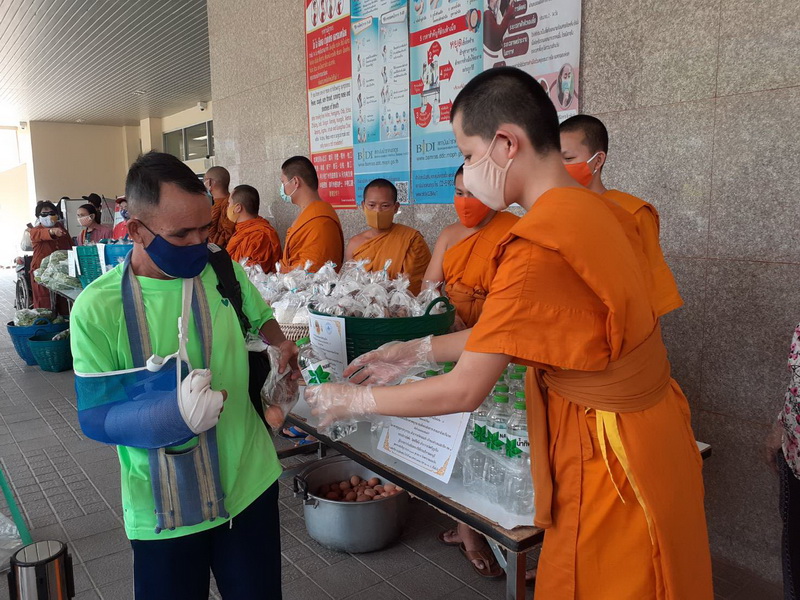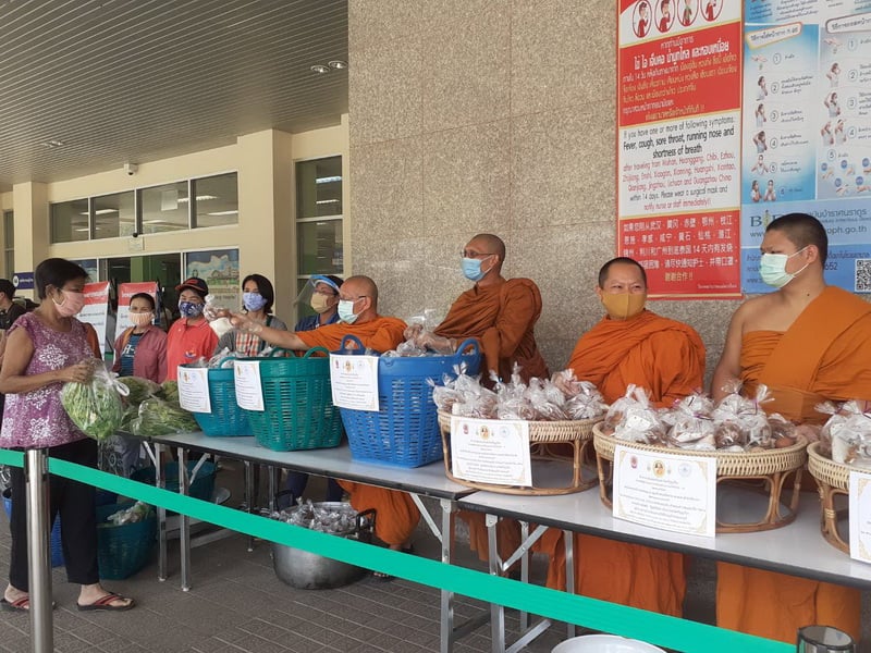 ทั้งนี้ สืบเนื่องจาก สมเด็จพระสังฆราชฯ ได้ประทานพระดำริให้วัดที่มีความพร้อมจัดตั้งโรงทาน เพื่อช่วยเหลือประชาชนให้พ้นวิกฤติโควิด-19 ทางคณะสงฆ์วัดศรีบุญเรือง และ วัดจอมแจ้ง ตลอดจนญาติธรรม จึงได้ร่วมกันจัดอาหารสำเร็จรูปขึ้นแจกจ่ายประชาชนในพื้นที่ ตั้งโรงทาน เพื่อสนองพระบัญชาสมเด็จพระสังฆราช ด้วยสถานการณ์การแพร่ระบาดเชื้อโควิด-19 ยังคงสร้างปัญหา ความเดือดร้อนเป็นวงกว้าง จนมีคำสั่งปิดห้างร้านต่างๆทำให้หลายคนตกงาน แต่คนไทยก็ไม่เคยทิ้งกัน หลายส่วนทั้งภาครัฐเอกชน ตลอดจนประชาชนทั่วไปที่ยังพอมีกำลังทรัพย์ ออกมาทำอาหารแจก ทำแมส แจกให้กับประชาชน เพื่อบรรเทาความเดือดร้อน