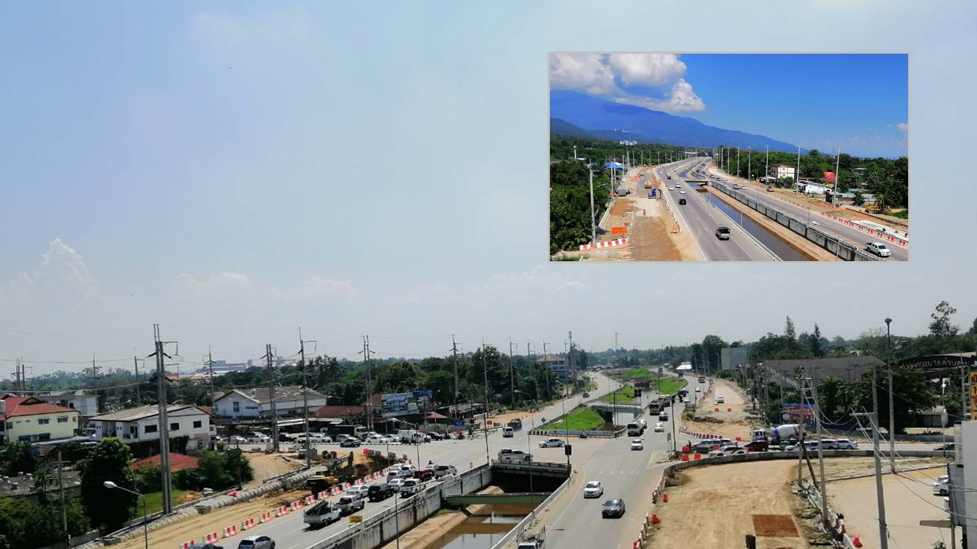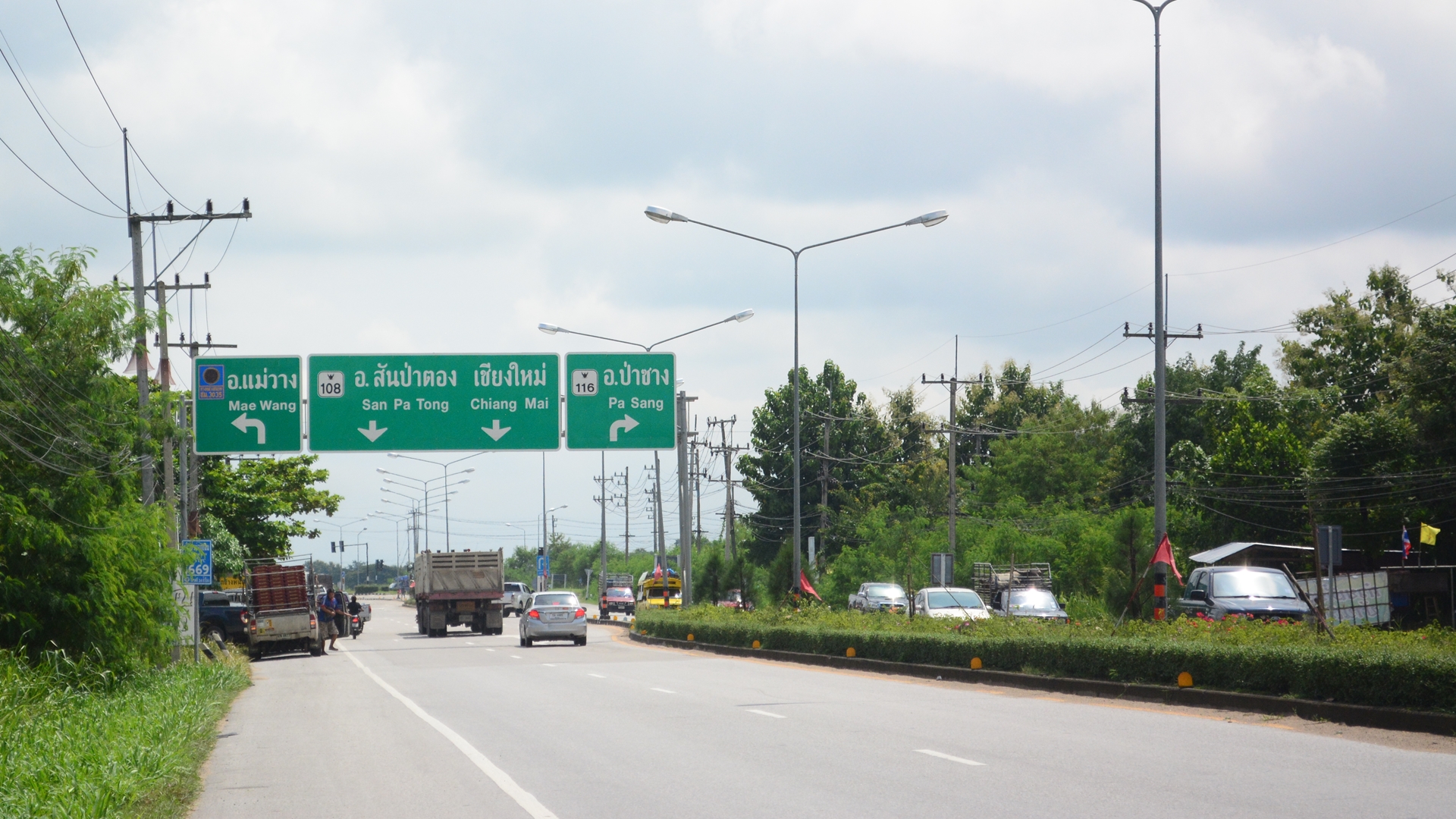 ที่ผ่าน ๆ มานั้น กรมทางหลวงชนบท (ทช.) ได้ดำเนินโครงการก่อสร้างทางลอดต่างระดับ บนถนนเลี่ยงเมืองสันป่าตอง–หางดง อ.สันป่าตอง, อ.หางดง จังหวัดเชียงใหม่ (ชม.3035) (ตอนที่ 1) แล้วเสร็จเมื่อปี 2551 ประกอบด้วยถนนสายหลักมีจุดเริ่มต้นจากบ้านน้ำบ่อหลวง อำเภอ สันป่าตอง–บ้านร้อยจันทร์ อำเภอหางดง ระยะทาง 14.035กม. ถนนสายรองเริ่มต้นจากบ้านน้ำบ่อหลวง–แยกทล. 108 บ้านสันป่าตอง อ.สันป่าตอง ระยะทาง 6 กม. และ (ตอนที่ 2) แล้วเสร็จเมื่อปี 2557 มีจุดเริ่มต้นจากทางหลวง 108 บริเวณบ้านท่าวังพร้าว ไปสิ้นสุดที่ บ้านน้ำบ่อหลวง อำเภอสันป่าตอง รวมระยะทาง 13.757 กม. รวมถึงก่อสร้างถนนสายเลี่ยงเมืองสันป่าตองหางดง (ตอนที่ 3) แล้วเสร็จเมื่อปี 2561 มีจุดเริ่มต้นจากบ้านน้ำบ่อหลวง อ.สันป่าตอง–บ้านร้อยจันทร์ อ.หางดง (บรรจบทล. 121 บริเวณแยกต้นเกว๋น) ระยะทาง 14.035 กม.