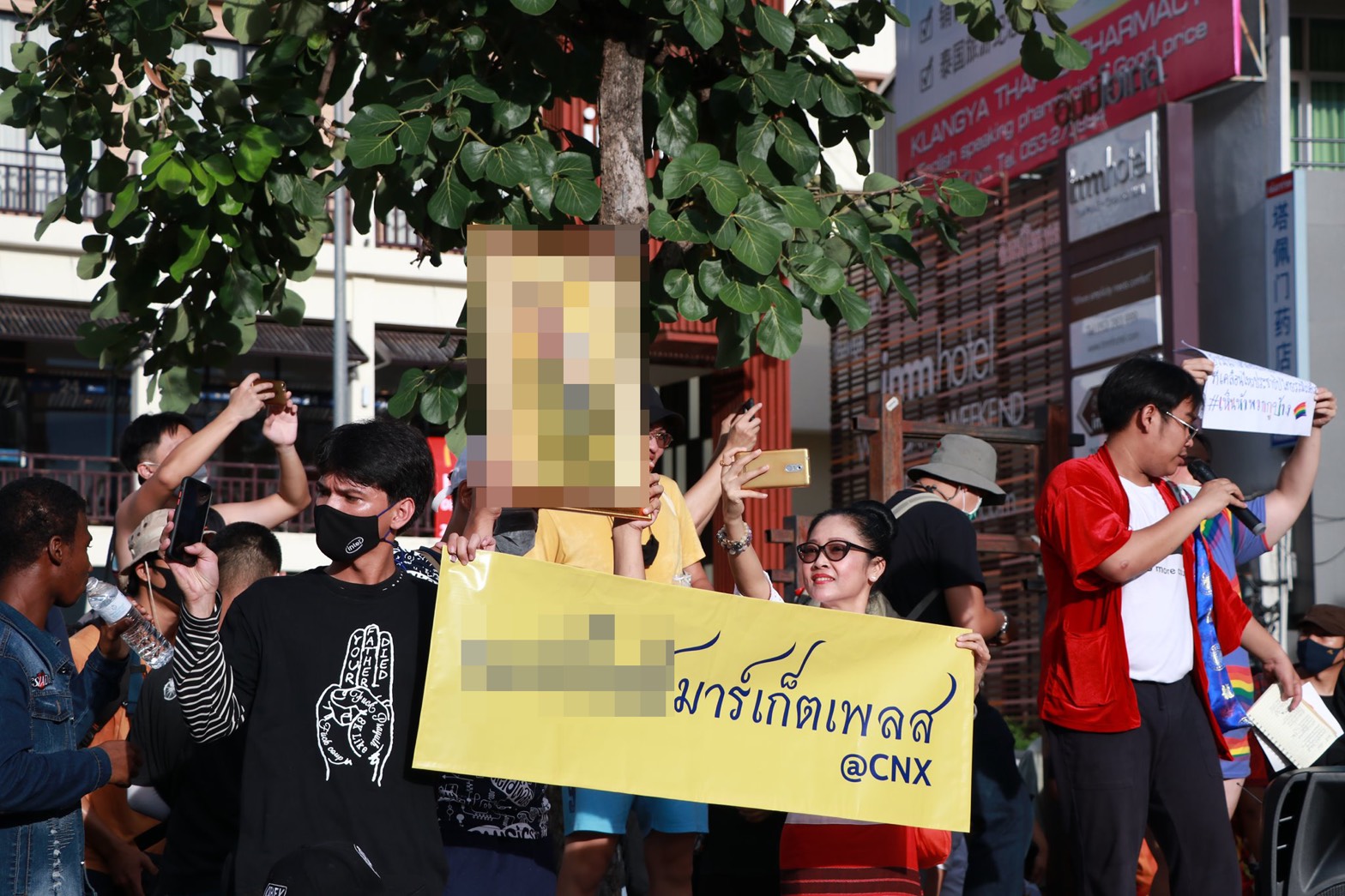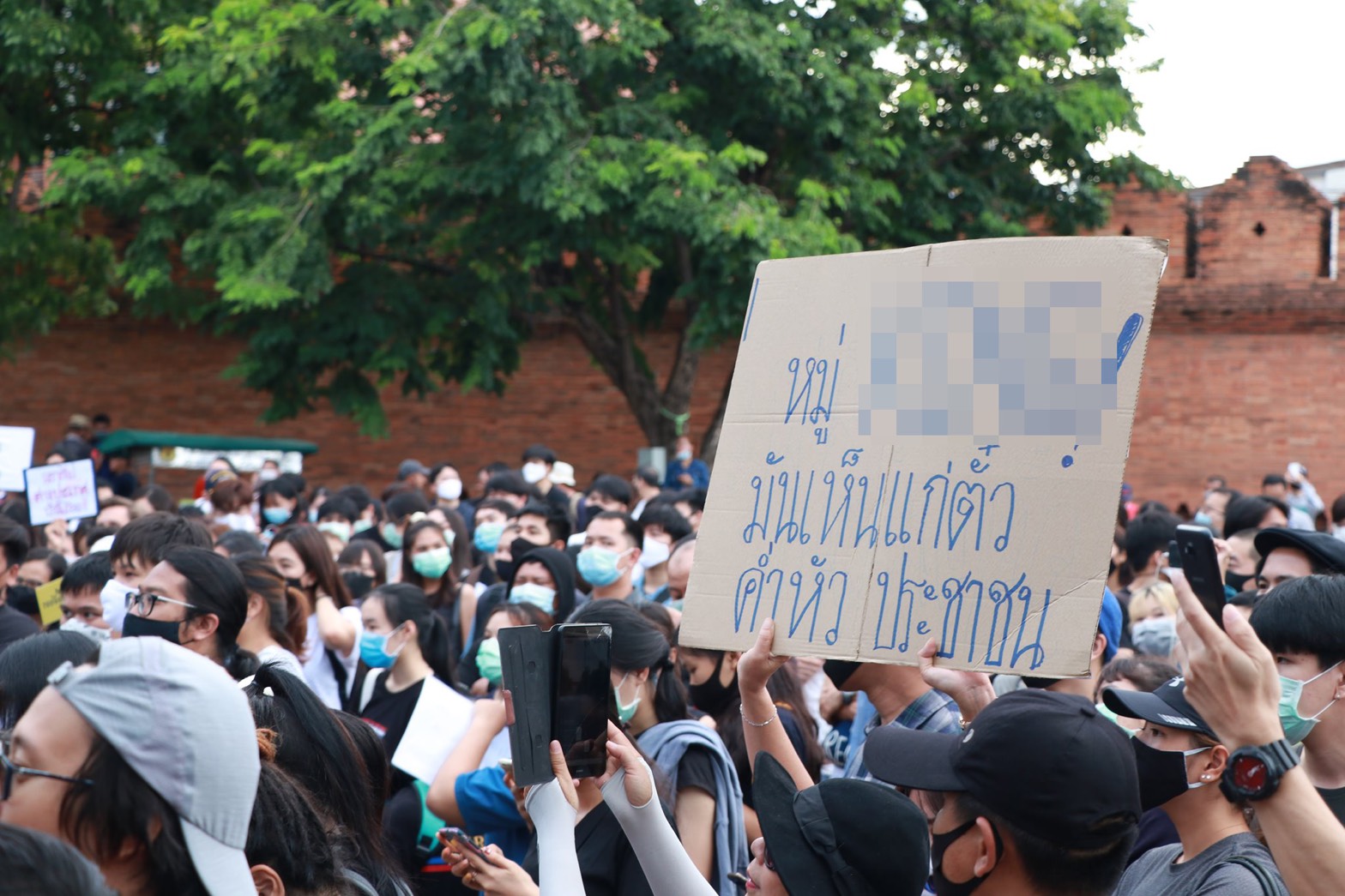 วันที่ 21 ก.ค. 63 รายงานข่าวแจ้งว่า จากกรณีที่เมื่อช่วงเย็นของวันที่ 19 ก.ค. 63 ที่ผ่านมา ที่บริเวณลานเอนกประสงค์ประตูท่าแพ อ.เมืองเชียงใหม่ ได้มีประชาชนชาวเชียงใหม่ จำนวนหลายร้อยคน ร่วมกันทำกิจกรรมชุมนุมการประท้วงรัฐบาล ซึ่งภายในการจัดกิจกรรมดังกล่าวนั้น ได้มีกลุ่มตัวแทนผู้ชุมนุมนำป้ายเขียนต่อว่ารัฐบาล และพบว่ามีผู้ชุมนุมบางคน มีการชูป้ายที่มีลักษณะไปทางไม่เหมาะสม เช่น การหมิ่นเบื้องสูง หรือใช่ถ้อยคำที่หยาบคาย ส่งผลทำให้เกิดวามเข้าใจผิด หรือทำให้เกิดความกระทบเสียหายกับชาติบ้านเมือง และจากเหตุการณ์ดังกล่าวได้มีข้อมูลมาว่าทางเจ้าหน้าที่ตำรวจ ได้มีการดำเนินการติดตามดำเนินคดี กับกลุ่มผู้กระทำการลักษณะดังกล่าว