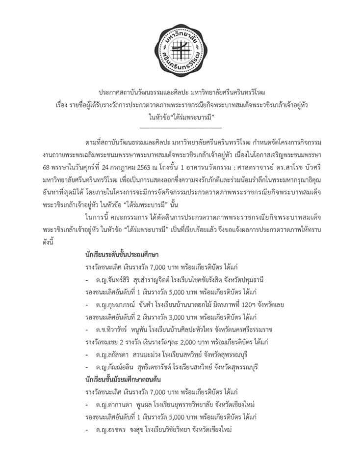 สพม.34 ขอแสดงความยินดีกับนักเรียนความสามารถพิเศษทางทัศนศิลป์ โรงเรียนยุพราชวิทยาลัย จังหวัดเชียงใหม่ ที่เข้าร่วมประกวดวาดภาพ “ใต้ร่มพระบารมี” โดย สถาบันวัฒนธรรมและศิลปะ มหาวิทยาลัยศรีนครินทรวิโรฒ ระดับประเทศ ได้รับรางวัลดังนี้