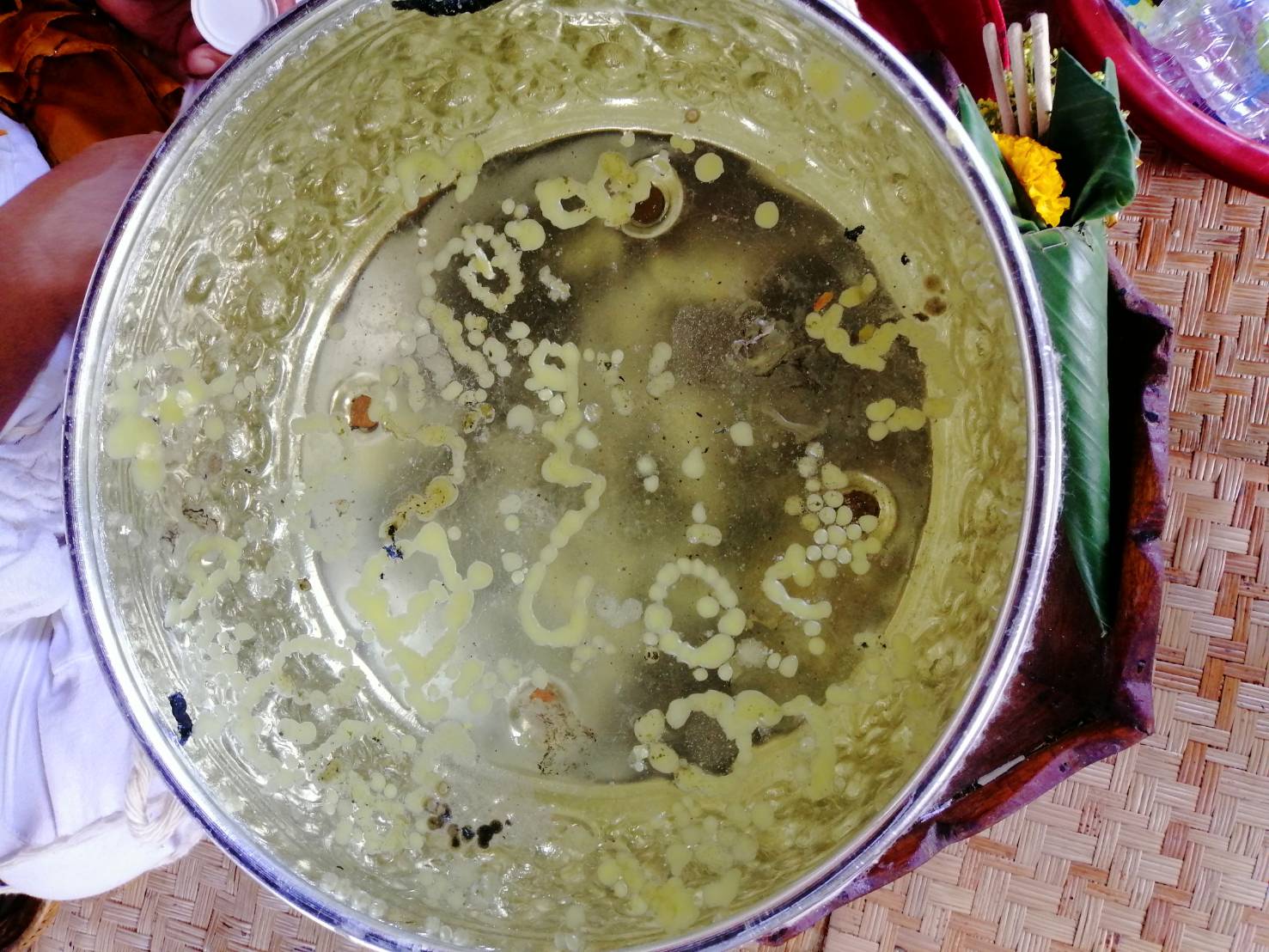 เมื่อวันที่ 29 ก.ค. 63 ที่ตำหนักวรญาณ เลขที่ 235 ม.10 บ้านปากกอง ต.สารภี อ.สารภี จ.เชียงใหม่ มีประชาชนเดินทางมาหา อ.สิริพจน์ สุขสวัสดิ์ อาจารย์ดูดวงสารภี หลังจากทำน้ำมนต์สามโลกให้ลูกศิษย์เสร็จ ก็เห็นเลขลอยขึ้นมาให้ลูกศิษย์เห็นกันทั่วหน้า มีทั้งลูกศิษย์ใกล้ชิดและที่เดินทางมาต่างจังหวัด ไม่พลาดสายตาที่จับจ้องเลขในบาตรน้ำมนต์